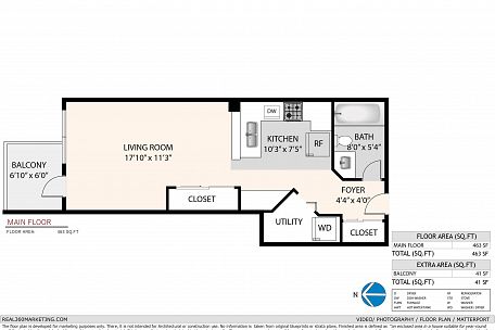 Bedrooms, 1 Bathrooms, 463 SQ.FT