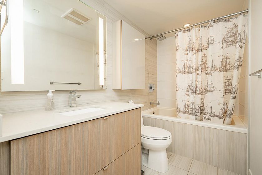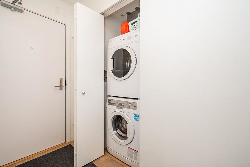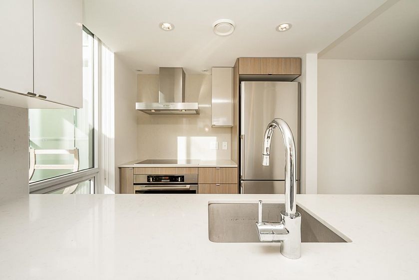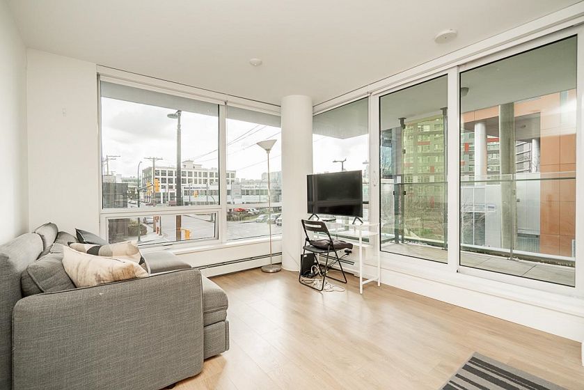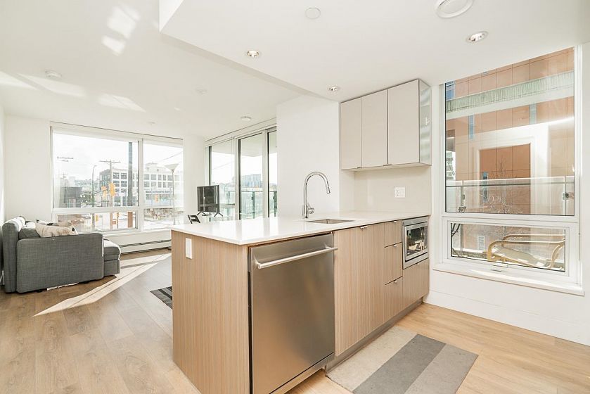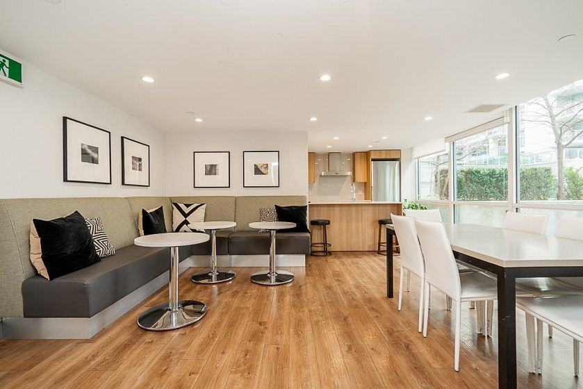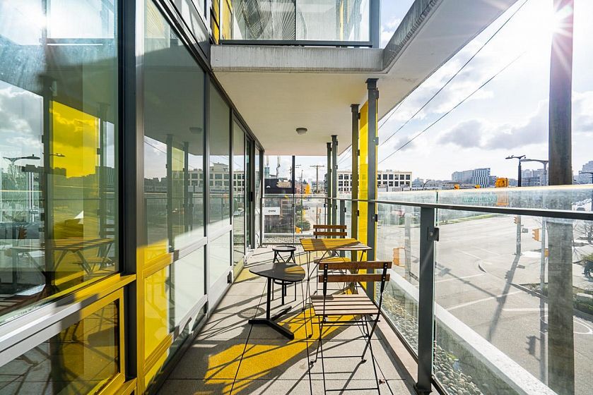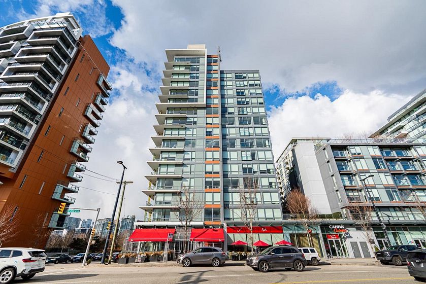 Welcome to a beautifully designed 1-bedroom + den corner suite located in the heart of Olympic Village. Boasting a spacious & efficient layout, this home features a 120 sq ft covered balcony perfect for enjoying sunsets & relaxation. The modern kitchen is equipped with top-of-the-line Italian Fulgor Milano induction stove & Blomberg stainless steel appliances, ensuring a sleek & functional cooking space. Building amenities including a gym, party room, rooftop patio with BBQ area, bike storage, etc. Steps from the iconic Seawall, vibrant restaurants, cafes, boutique shops, Science World, & the community center. Plus, you're just minutes away from Canada Line and Expo Line SkyTrains & the Express Bus to UBC. strata fee covering both heat & hot water. Perfect location for living & investment