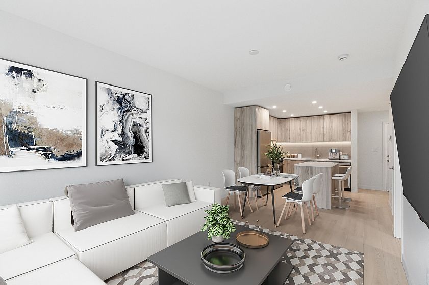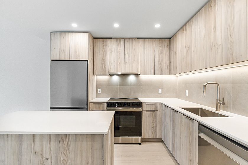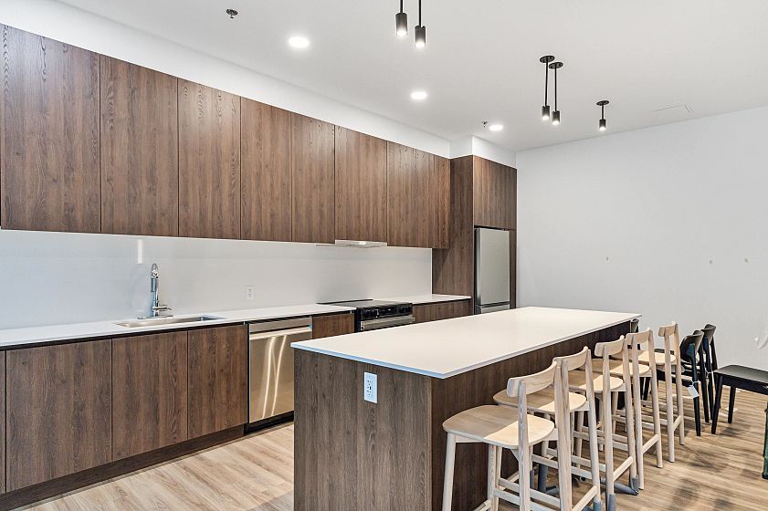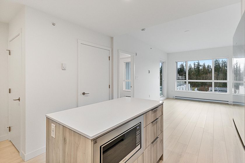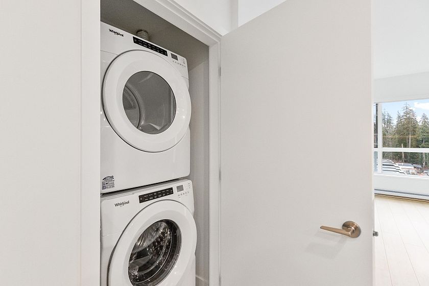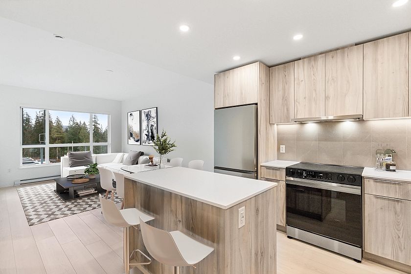 TOP FLOOR condo at Lupine Walk, a newly built community located near Parkgate Village, Deep Cove, Cates Park, Mount Seymour, various schools and trails. Open floorplan with 9-foot ceilings, spacious kitchen featuring stone countertops, porcelain tile backsplash, stainless steel appliances and center island/breakfast bar. In-suite laundry, secure parking, storage locker and a spacious East facing covered balcony offering mountain and water views. Complex provides outstanding amenities including a rooftop patio, fitness center, children’s play area, social lounge with kitchen, games area, BBQ & dining terrace, walking paths and bike/pet wash stations. Walk, hike, bike, ski, paddle, shop & eat all from just outside your door. GST included.