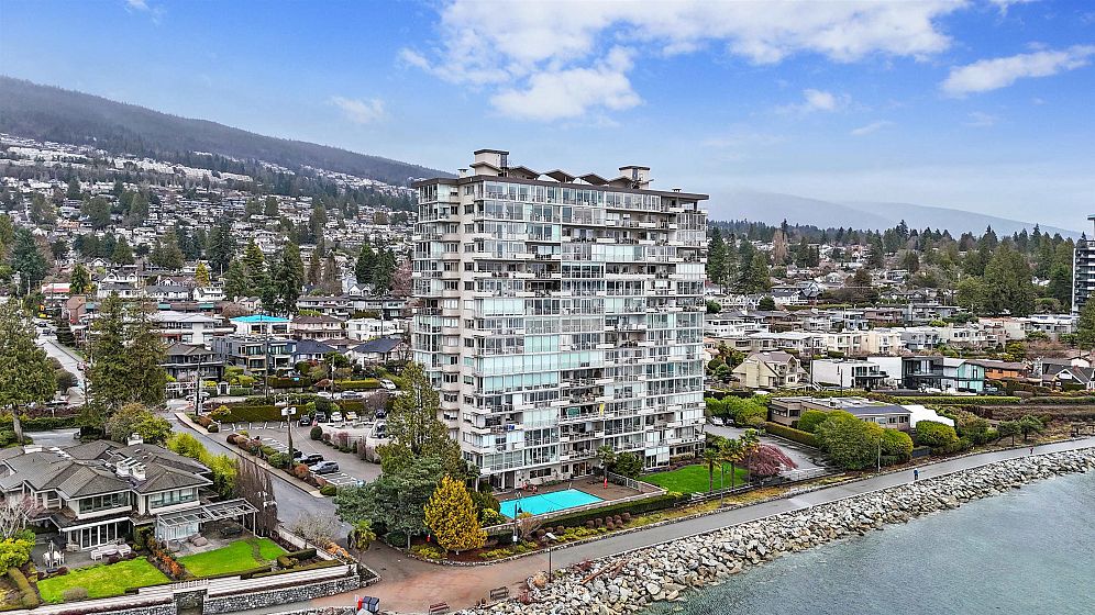 Seastrand in Dunderave. Experience coastal living in this charming waterfront condo boasting unobstructed views of the ocean, majestic mountains and Stanley Park. The bright & spacious plan seamlessly merges with an enclosed solarium, offering a panoramic 270-degree spectacle from north, east, and south. Enjoy updated kitchen and authentic hardwood flooring. Indulge in resort-style amenities including a heated swimming pool, lounge, live-in caretaker, and convenient guest suite. Enjoy easy access to the beach, seawall & Dundarave's charming amenities, groceries, cafes and recreational center. Building just passed levy to do exterior railings and sellers have paid. With one parking space, locker, visitor parking. Every convenience at your fingertips!