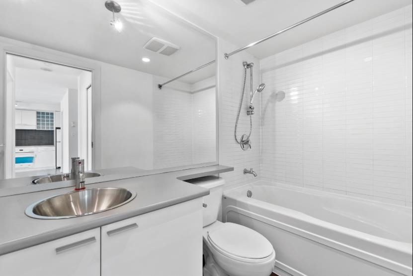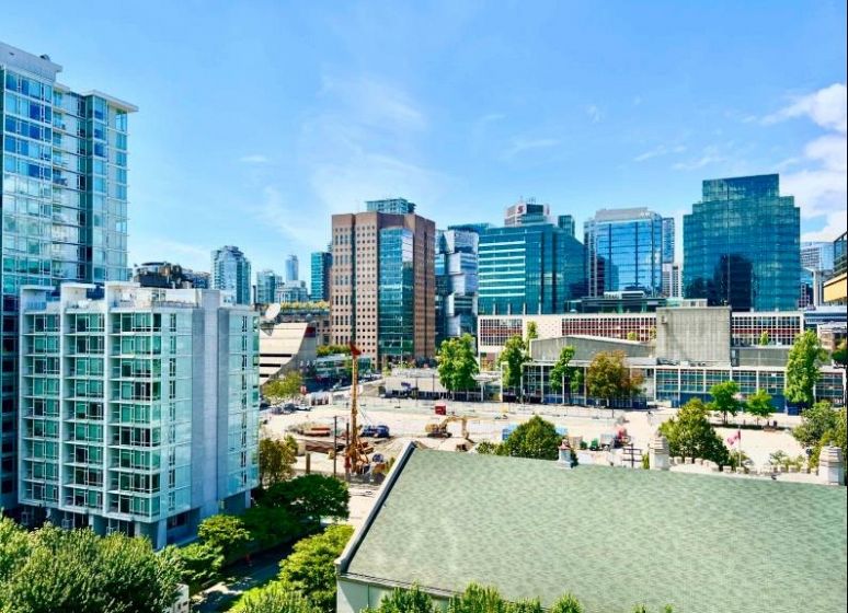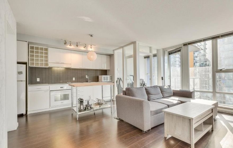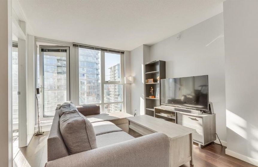 Spectrum IV by CONCORD PACIFIC: Welcome to this conveniently located 1 bedroom and DEN plus SOLARIUM and balcony unit. This unit features laminate flooring, brand new blinds, INSUITE laundry, open layout, and flex spaces with BRIGHT Southwest exposure. The complex has all the amenities you can ask for at Club Ozone: indoor POOL, hot tub, sauna and steam room, FITNESS centre, and CONCIERGE. With a Walk Score of 97, 100 transit score and very bikeable, it is located steps to Skytrain, great restaurants, T&T and Costco, Gastown, Yaletown, seawall, Parq, BC Place, Rogers Arena and much more. Rentals allowed (minimum 180 day term), and 1 cat or 1 dog permitted (dogs must be under 16 inches & less than 30lbs). Book your showing now!
