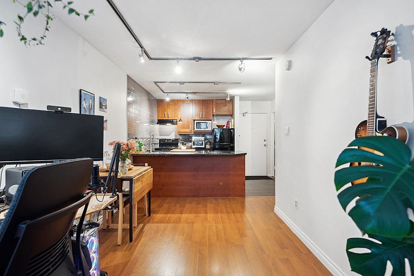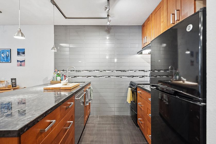 Welcome to 615-1330 Burrard in the sought-after Anchor Point! This well-designed 618 sqft condo features a spacious kitchen with sleek stone countertops, a subway tile wall/backsplash, and ample prep space. The open-concept living and dining areas have plenty of natural light from large windows, creating an inviting space to relax or entertain. The generous bedroom includes a cozy workspace plus large closet space. Heat, hot water, and the convenience of a live-in caretaker are all included in this well-managed concrete building. Don’t miss this opportunity to own a stylish home in the heart of downtown Vancouver—schedule your viewing today!