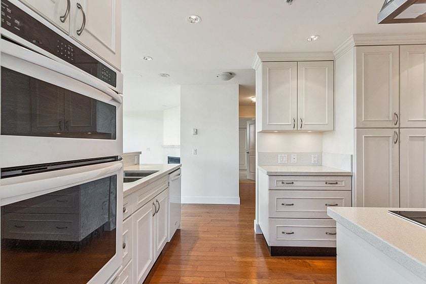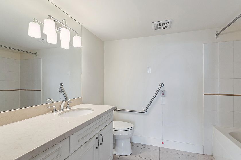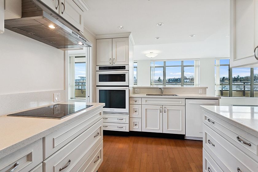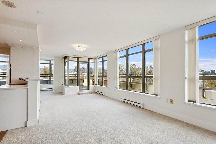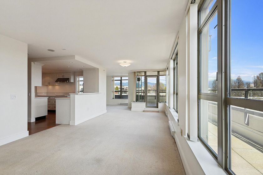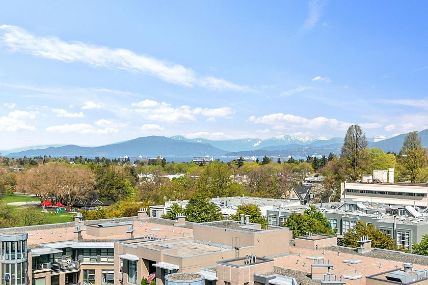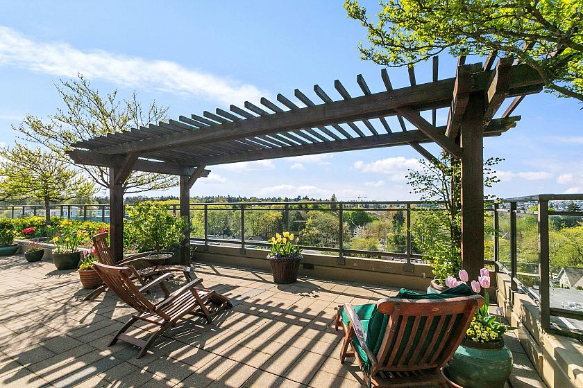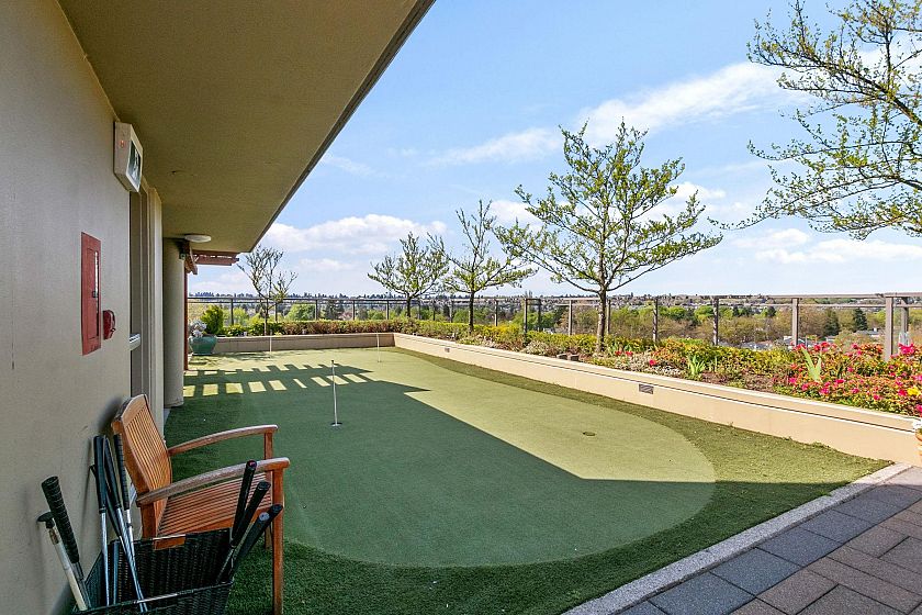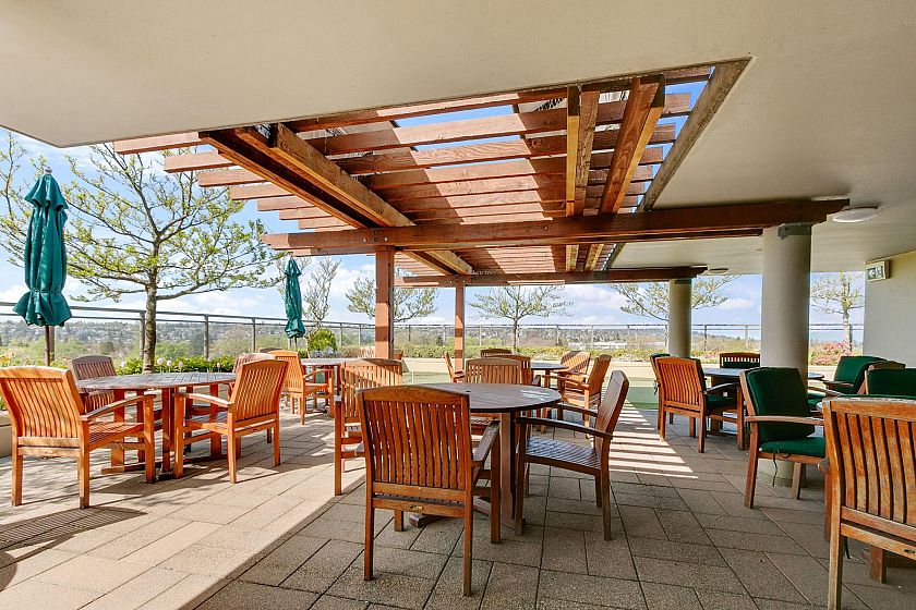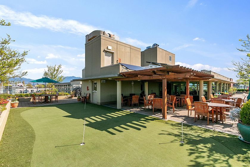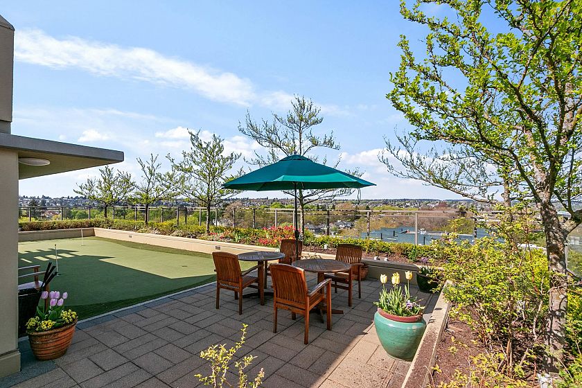 Bright, spacious north east corner suite, one of the largest in the building w/ mountain, city, water & park views. A truly rare feature is the 387 sq.ft. terrace & wraparound balcony, perfect for container gardening or relaxing in your private urban oasis. Redesigned floorplan boasts an expanded kitchen, open-concept living, dining & family/entertainment area. Originally 2 bedrooms (can be re-created if desired), 2nd bedroom was converted to maximize living space . Experience comfort, security & carefree lifestyle in this vibrant 60+ independent living community with gourmet dining, housekeeping, concierge service, fitness centre & spa/salon, rooftop terrace w/putting green, library, cinema, cozy pub & more.