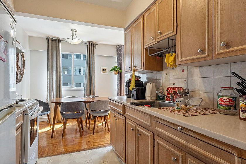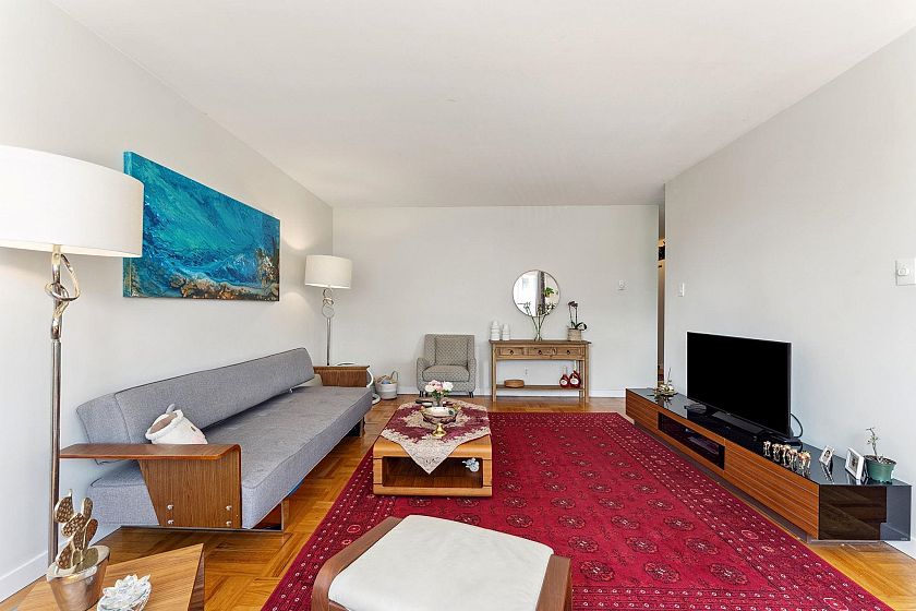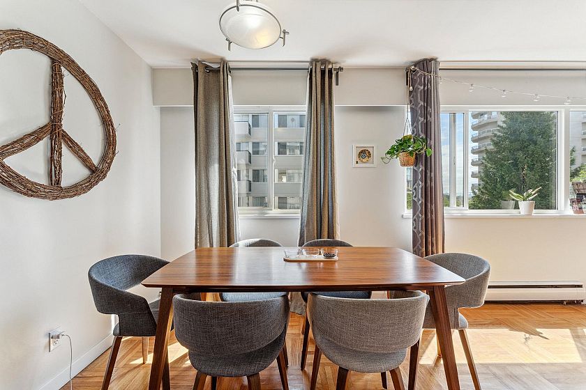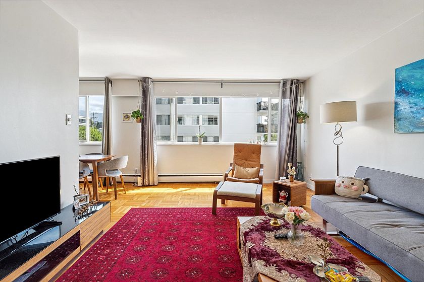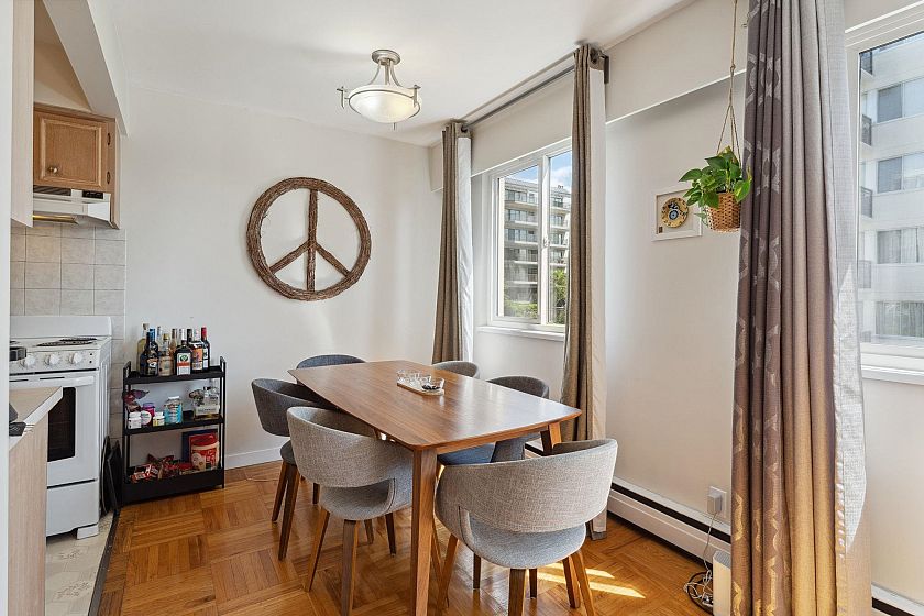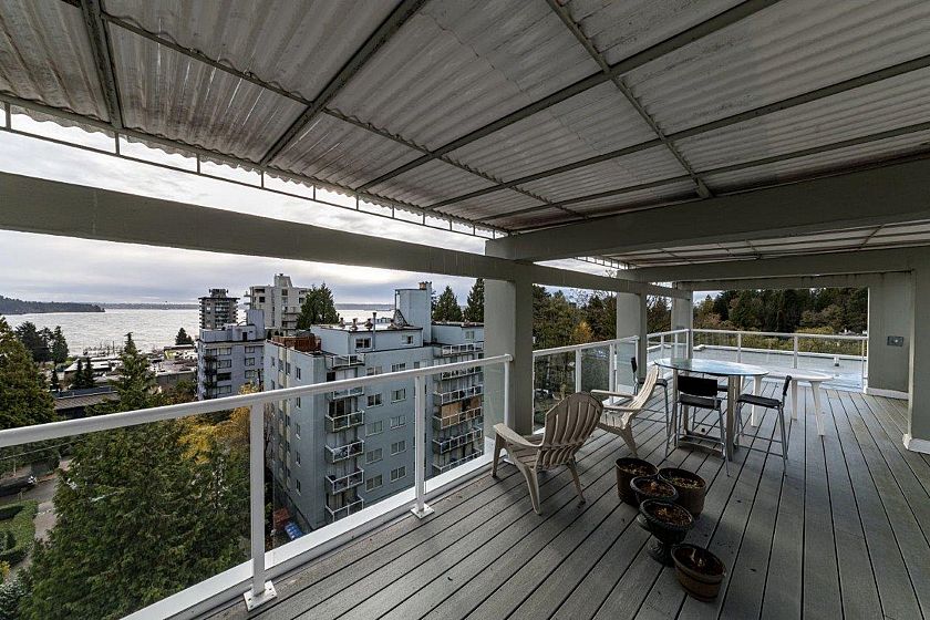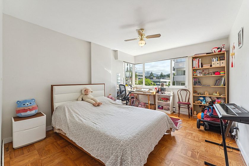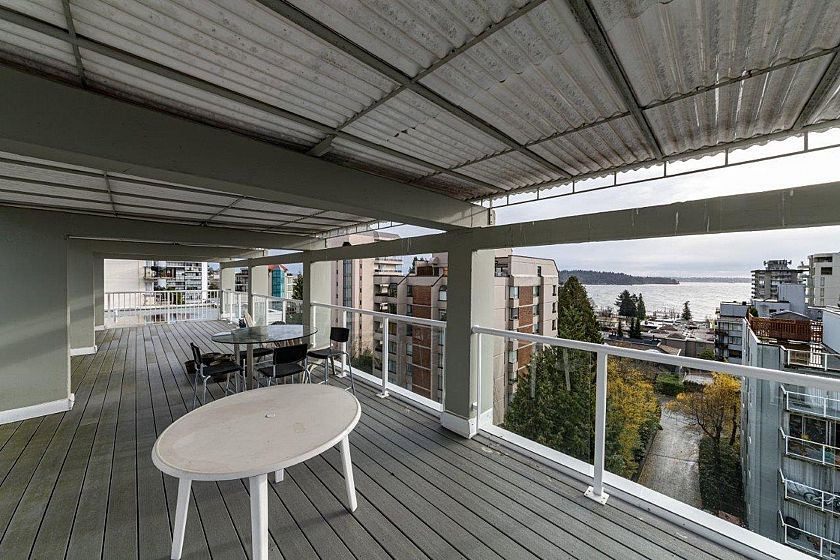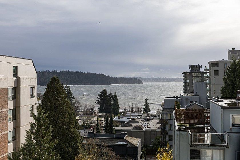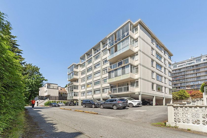 This immaculate one-bedroom home in the heart of Ambleside is move-in ready. Features include a formal entry, open living/dining with Lions Gate Bridge views, updated galley kitchen, large bedroom with walk-in closet, in-suite storage, and Fleming oak hardwood floors. Located in a well-run building with free laundry and a rooftop deck offering ocean views. Maintenance fee includes heat, hot water, laundry, and cable. Steps from the seawall, beaches, shops, cafes, Park Royal, and transit—enjoy the best of West Vancouver living.