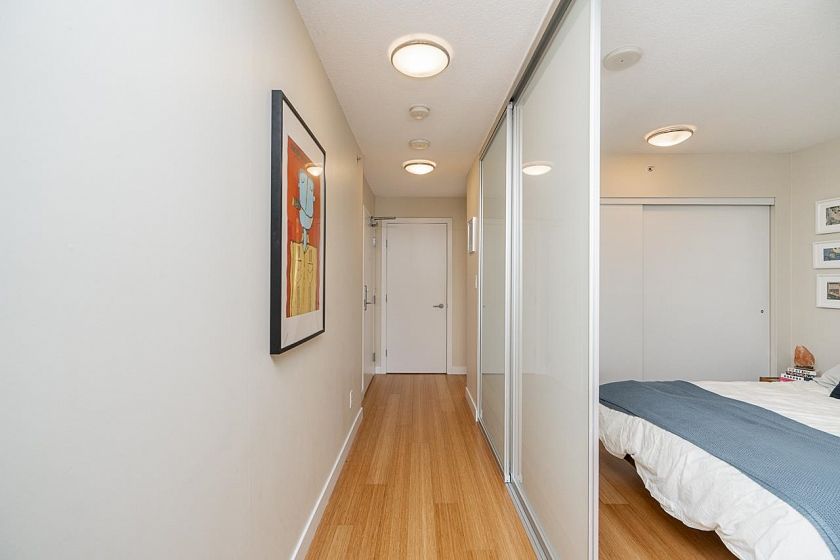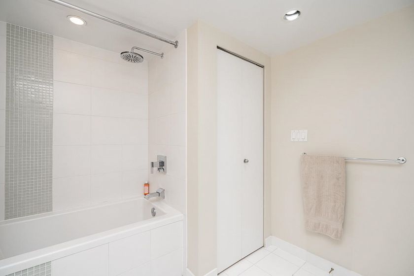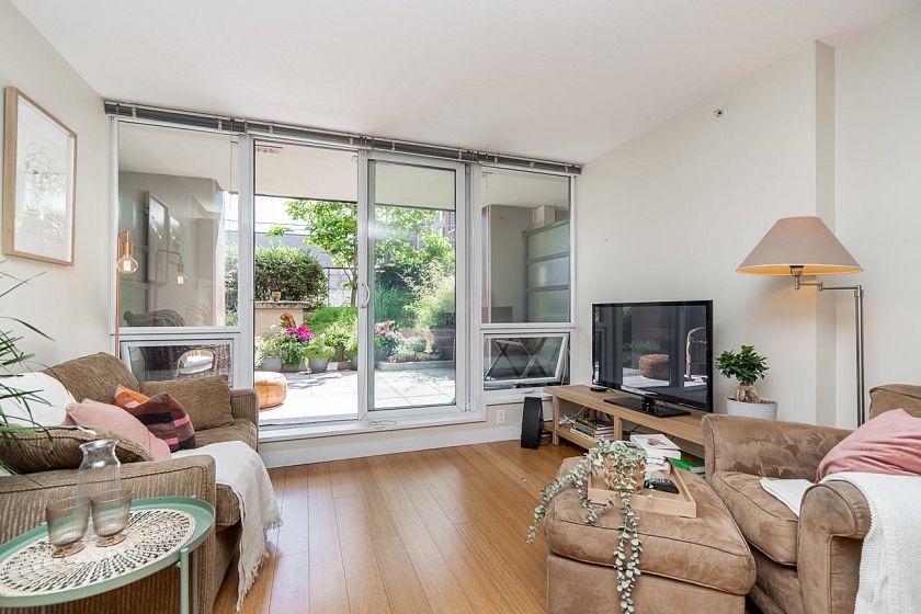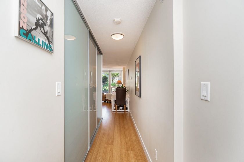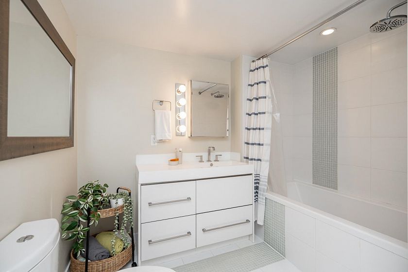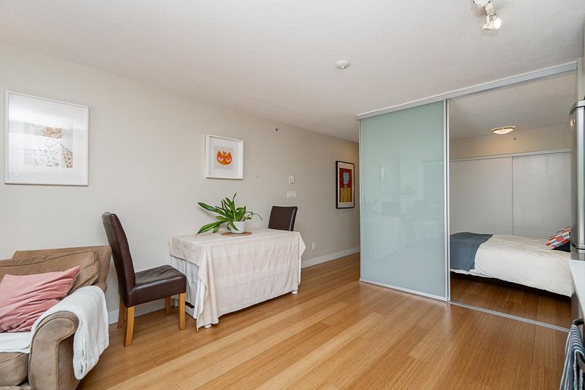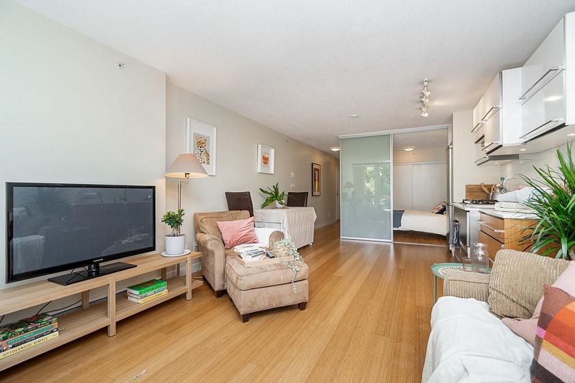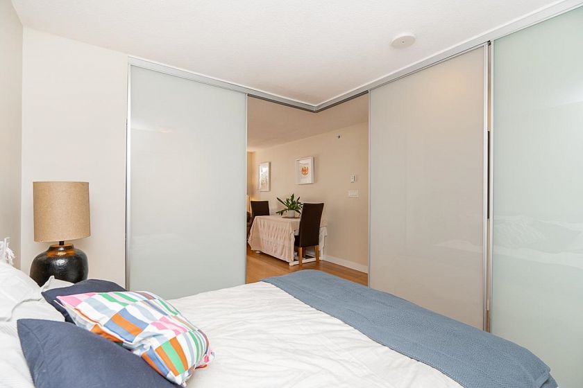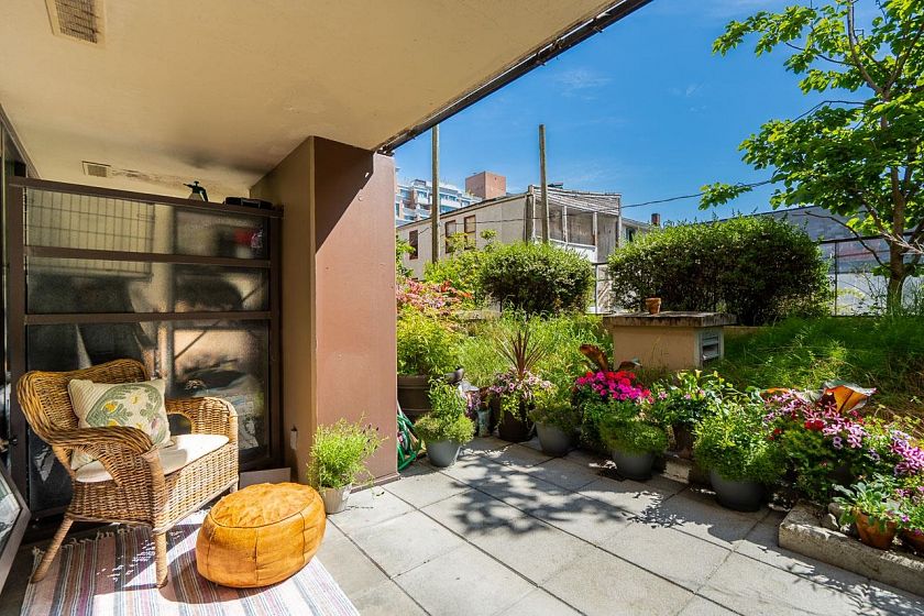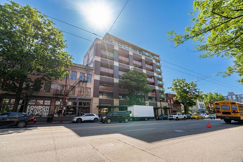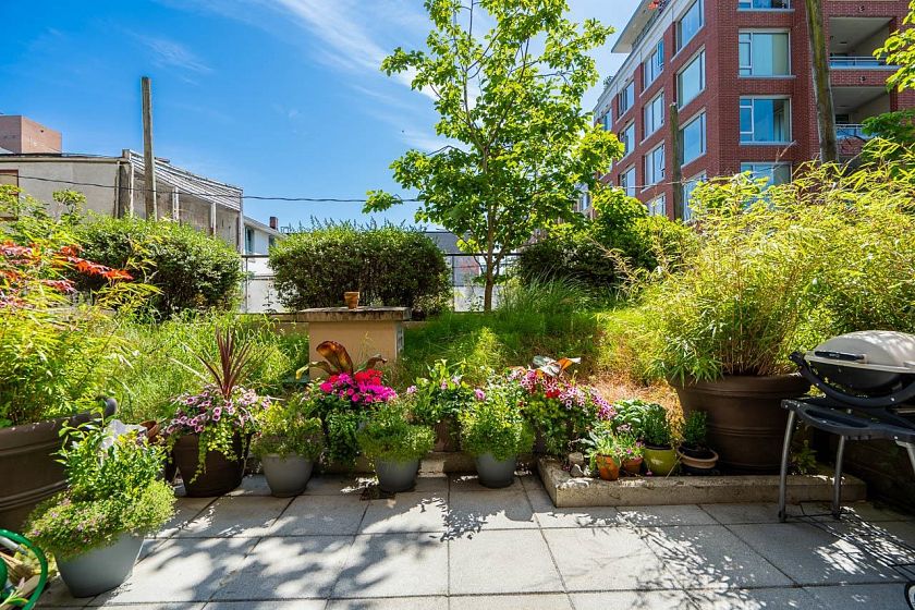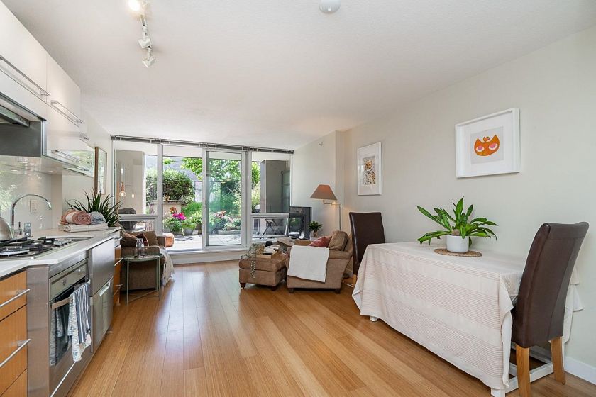 Welcome to GINGER in vibrant Crosstown- This home is perfect for first time home buyers or professionals and offers exceptional value with a large, over-sized private, BBQ-friendly patio on the quiet side of the building. Inside, you’ll find a sleek, contemporary kitchen featuring stainless steel LG appliances, a Fischer & Paykel dishwasher, hood fan & AEG Oven and cooktop. Space-saving vertically opening cabinetry, laminate flooring throughout, a sliding glass partition for the bedroom, and a spacious, spa-like bathroom complete the space. Additional highlights include in-suite storage, a stacked washer and dryer, and one secured parking stall. Rentals/ AirBnb and pets are welcome!