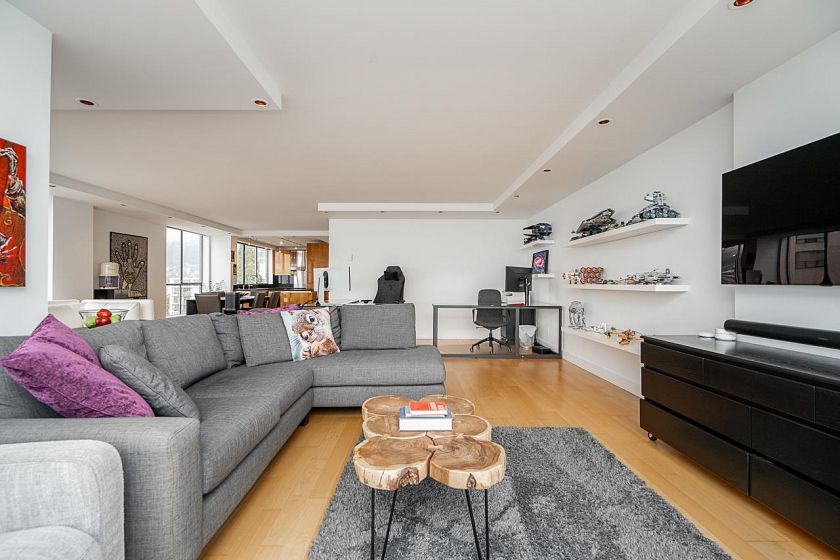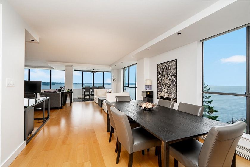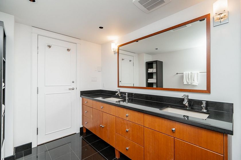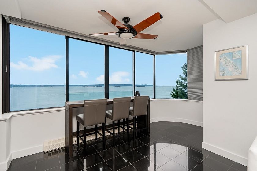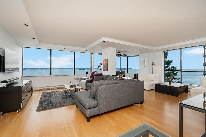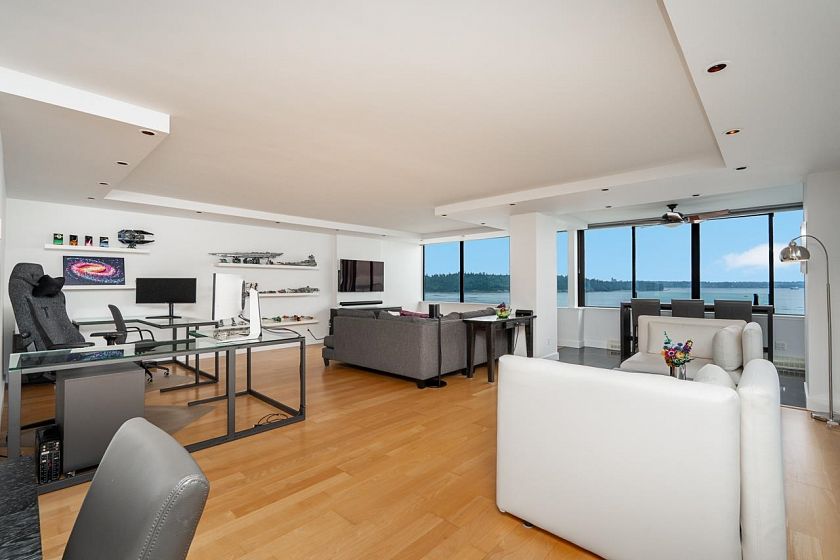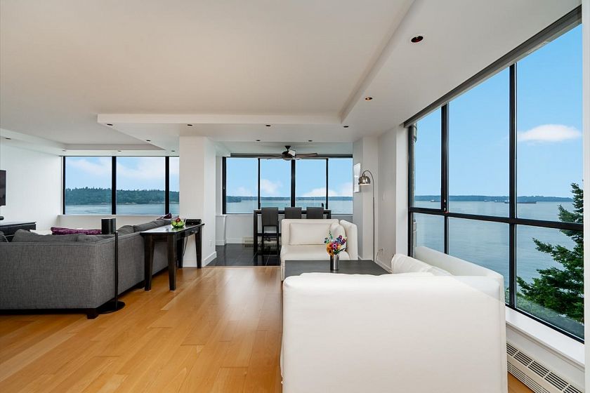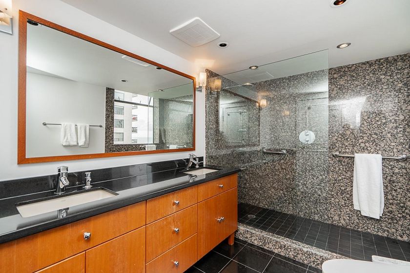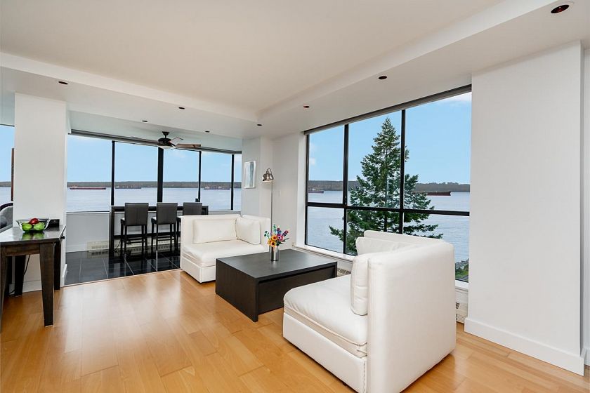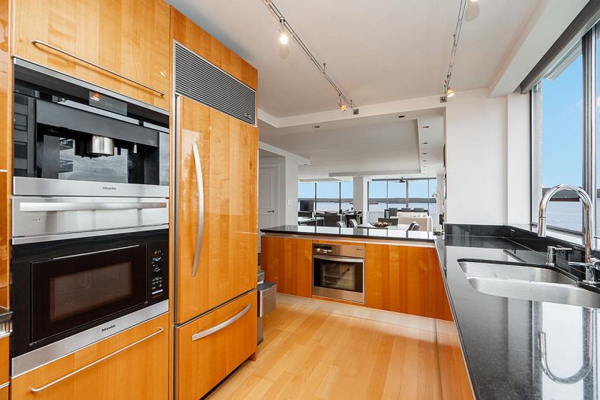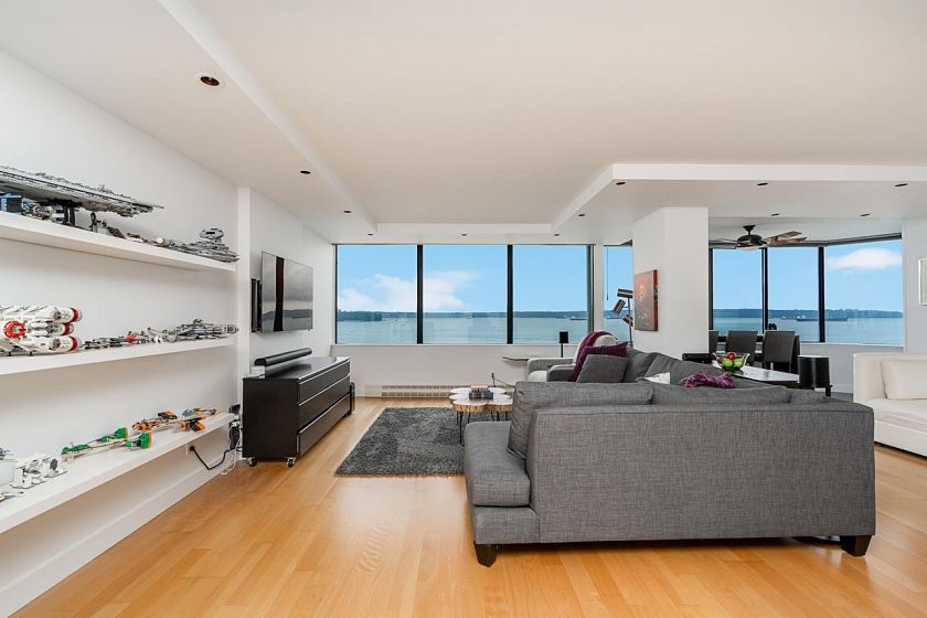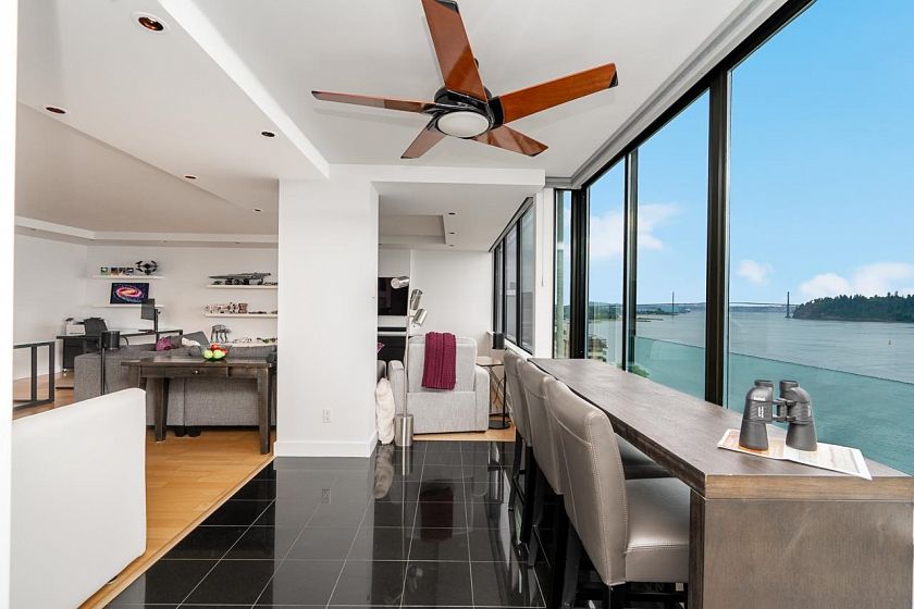 WATERFRONT in upscale Waterford House. This is the only 1 bedroom unit in the building. The other 2 similar floor plans were turned into 2 bedrooms. This design allows for stunning living and entertainment spaces perfect for oversized furniture and all your treasures. Extremely high end renovation by previous owner has been enhanced by current owners. The building has recent upgrades including new lobby, new envelope, and new roof. Extra security offered by live in manager and security cameras monitored at the front desk. Two large parking spots with EV charging. Enjoy the lifestyle and VIEWS FROM THE LIONS GATE TO THE SUNSETS that only true waterfront in this location can offer.