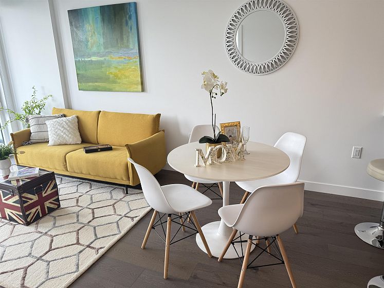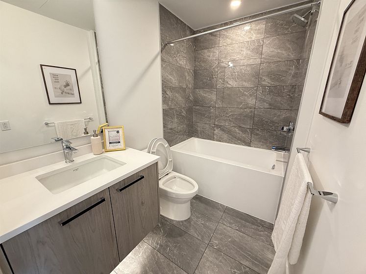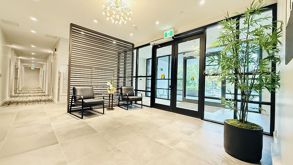 LOCATION! LOCATION! LOCATION! Concrete built property!!! This brand-new 1-bedroom + 1 den home faces a quiet inner street, offering both comfort and privacy. It features modern cabinetry, hard wood flooring, quartz countertops, high ceilings, and central air conditioning. The den is flexible - ideal as a home office or a guest room with a single bed. Includes 1 parking stall and 1 bike storage rack, plus full coverage under the 2-5-10 New Home Warranty. 5-minute walk to Langara - 49th Canada Line Station, offering direct access to Downtown, Richmond, and YVR Airport. Only 15 minutes walk to the future Oakridge Centre. With in walking distance to top-ranked schools, including Dr. Annie B. Jamieson Elementary and Sir Winston Churchill Secondary (IB program) .