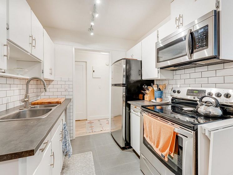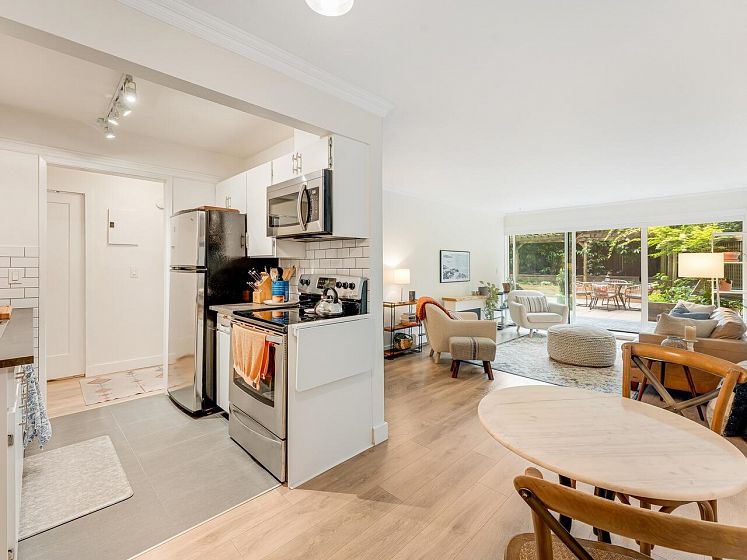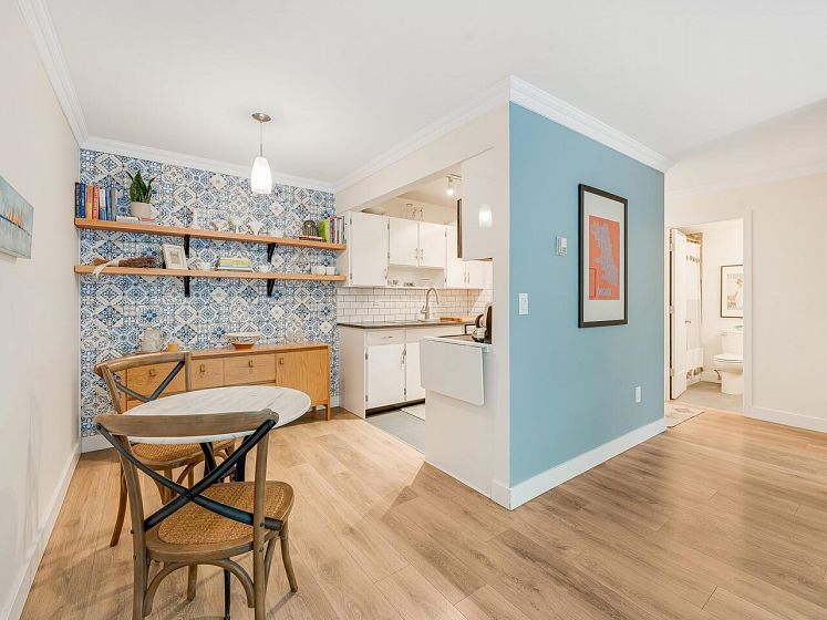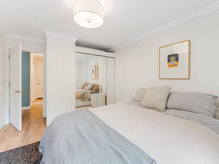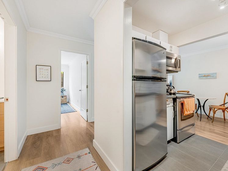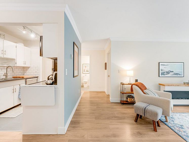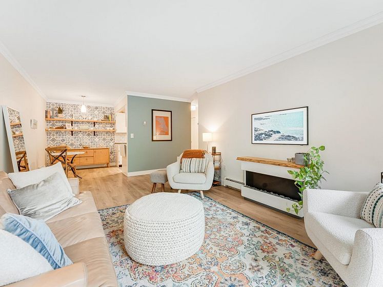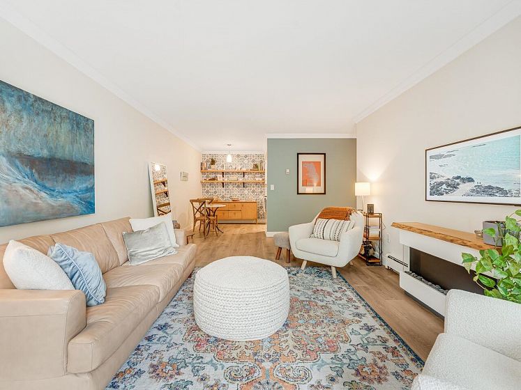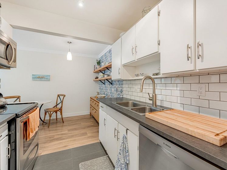 This inviting home at the Landmark Mariner is a pleasure to show. Updated throughout, it’s both beautiful & comfortable. With a wall of windows the light is amazing & the sliding door onto the oversized private patio extends your living area, looking & feeling extra spacious. Indoor/outdoor living can be enjoyed throughout the year with this partially covered outdoor sanctuary. New planters, thoughtfully landscaped & so, so quiet. The building recently completed their exterior renewal with new windows, balconies & rain screen. A well run, friendly place in a central location, with easy access to downtown, the north shore & highway. Lots of restaurants & amenities nearby too. Pets welcome, storage & parking. This unit is one of the few with in-suite laundry.