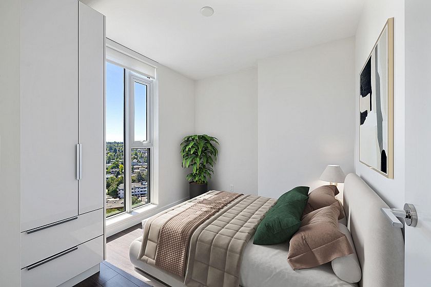 Showpiece sub-penthouse at The Independent in Mount Pleasant! This 1 BED + DEN home sits on the quiet, sunny side of the building. The contemporary kitchen features integrated appliances, stone countertops, and a functional island that’s perfect for cooking or entertaining. Versatile den provides ideal work-from-home setup, while the balcony has an undeniable luxury view. The spa-like bathroom invites you to unwind, and with air conditioning, wide-plank laminate floors, and thoughtful design throughout, this home is a perfect ten. Step outside your door onto 20,000 sq ft of resort-style amenities: fully equipped gym, party room, guest suites, dog wash, BBQ, garden plots, and courtyards. All this in the heart of Mount Pleasant - A flawless starter or a smart investment!