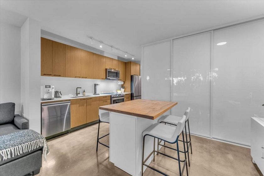 Step into this stylishly renovated one-bedroom in a solid concrete building, offering a rare mix of comfort and cool. Inside, a chic new bathroom and thoughtful updates set the tone, while clean lines and modern finishes make it move-in ready. New appliances, concrete floors and 9 foot ceiling heights are just some of the perks of this home. The real showstopper is a large private patio, perfect for hosting friends, barbecuing, or just relaxing outdoors. All of this at a fantastic price, in a neighbourhood known for award-winning restaurants, cafes, bars, and boutique shops right on your doorstep. A home that feels as good as it looks, in a community you'll love to explore.