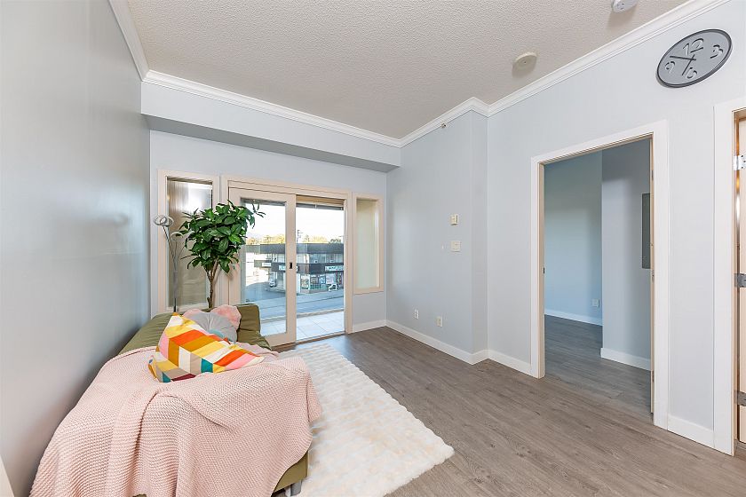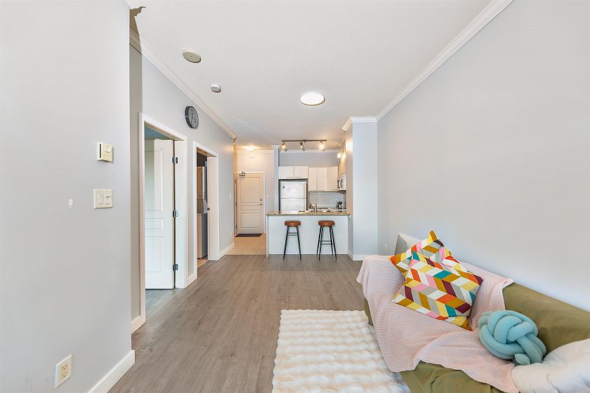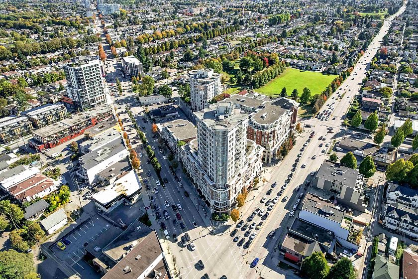 Welcome to vibrant King Edward Village – a well-managed concrete development offering unbeatable convenience with Save-On-Foods, TD Bank, Vancouver Public Library, Anytime Fitness, healthcare, and daycare right at your doorstep. Recently refreshed with new flooring and paint throughout, this 1 bed + den, 1 bath home features a smart layout, modern open-concept kitchen with stainless steel appliances, quartz counters, and crystal lighting, plus fresh paint and engineered hardwood floors. The den is ideal as a home office or flex space. Oversized windows, high ceilings, and a spacious balcony showcase stunning city and mountain views. Includes insuite laundry, secure parking, storage locker, and access to a fitness centre, party room, and bike storage. Open House Oct 11, 11:00 AM - 2:30 PM.