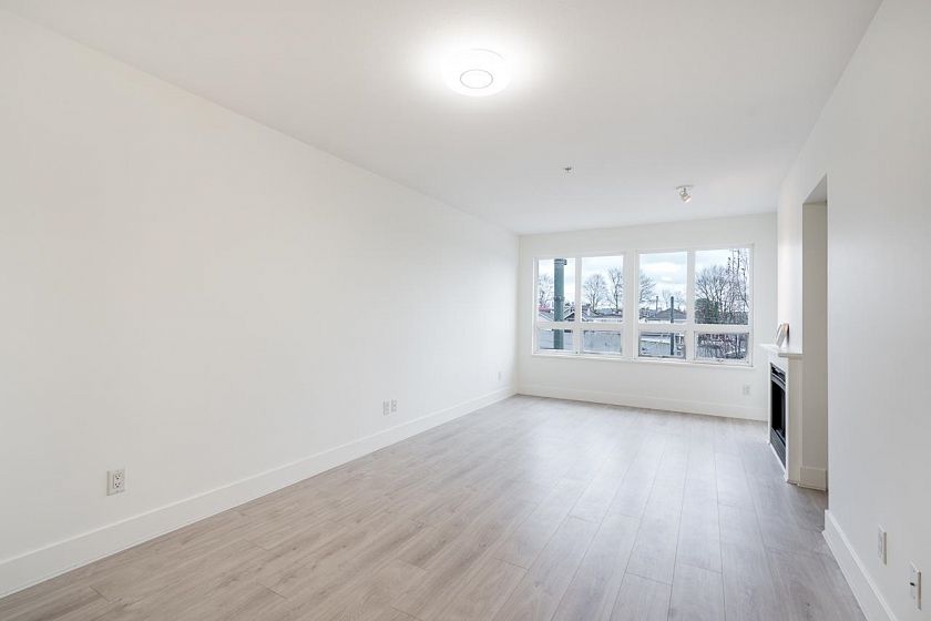 Location Location Location! The Zoey, located right beside Highway One, across the street from PNE/Playland, Empire Field & Mcdonalds and steps to tons of shops & restaurants along Hastings Street! A spacious top floor 1 bedroom & den 765 Sq Ft unit with southern views! Features include newer laminate flooring throughout, a new washer/dryer & in suite storage! Tons of sunlight throughout the unit. Hot water included in your strata fee. One parking stall included. Short drive to New Brighton Park, Confederation Park including a public library, Sohen Gill Sports Box, a running track, Eileen Dailly Leisure Pool & Fitness Centre and Brentwood Mall. Less than a 20 minute drive to Downtown Vancouver, Grouse Mountain, Burnaby Mountain/SFU & close to North Van!