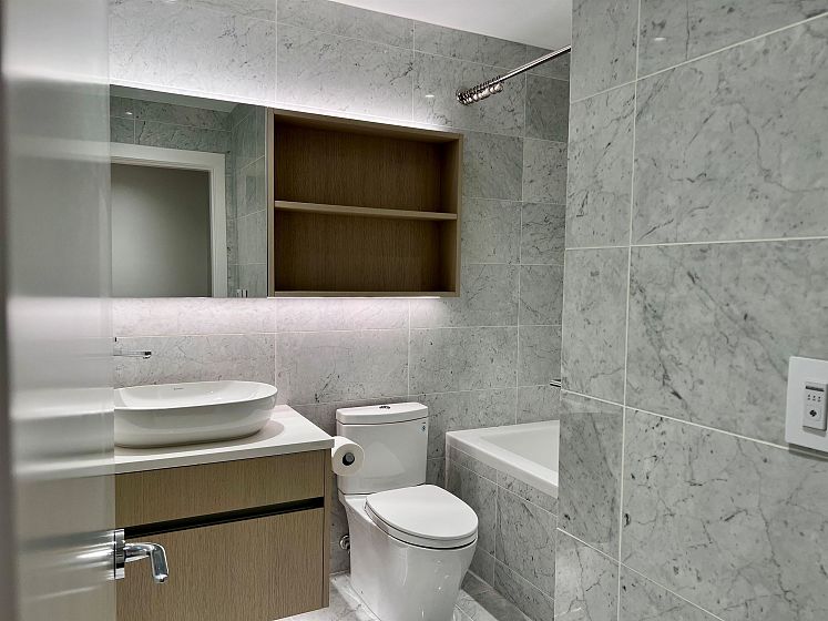 Luxurious Studio+ WalkinCloset + Flex room, Full Bath home next to QE Park! This spectacular home features a sleek, modern integrated kitchen w/premium Miele Appliances & Custom Italian cabinetry for premium living! Unwind after a hard day at work or entertain in your comfy living/dining areas! BBQ or relax on your spacious balcony & take in the lively scenery! The 4pc modern European bath w/rainshower head, soaker tub & heated floors is your tranquil oasis of relaxation! In suite Blomberg laundry, A/C & Locker. Central location, just steps to Eric Hamber, QE Park, tennis courts, pitch&putt, Hillcrest Community Center, VGH & Women's Hospital, Oakridge Mall, many restaurants, shops, groceries, banks, services at Oakridge Mall and around the Cambie corridor.