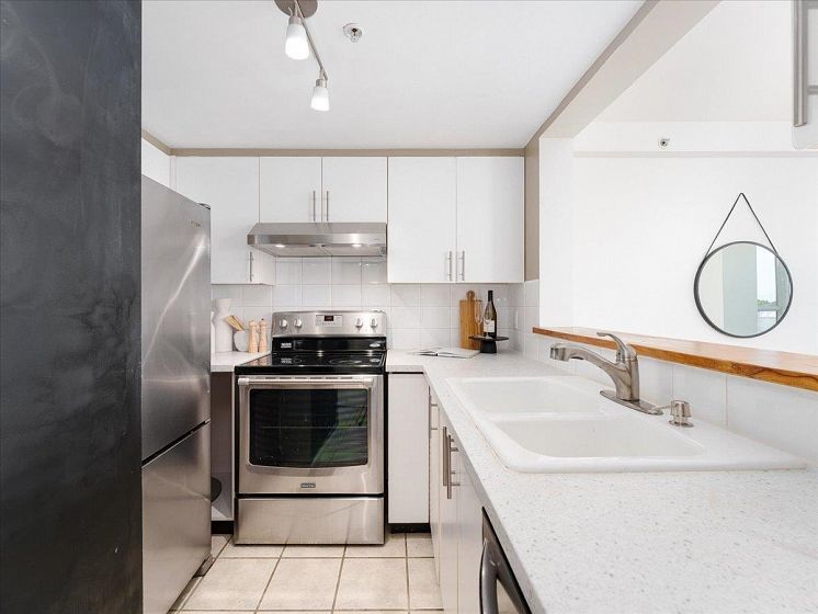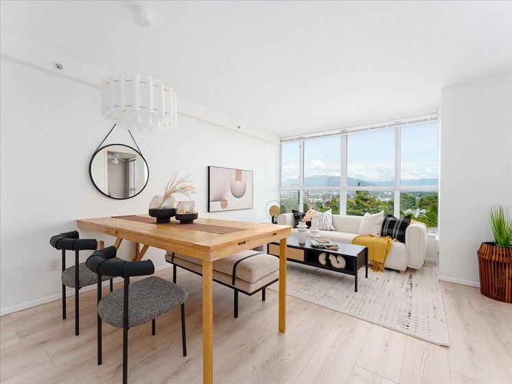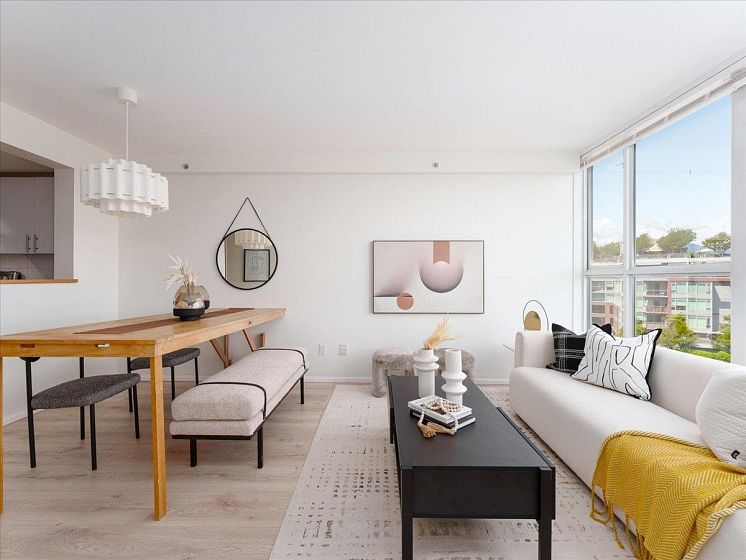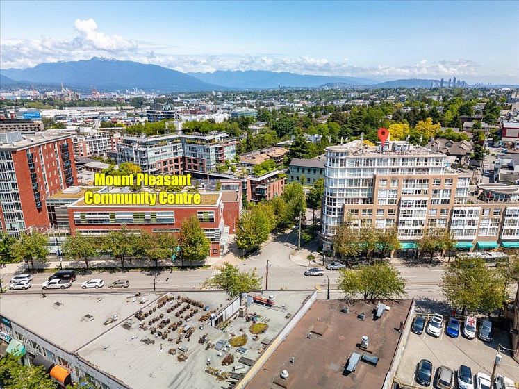 Tucked away on the quiet side of the building, this bright 1 bed + flex home offers unobstructed city & mountain views from the 7th floor. With 8' ceilings, expansive windows, and a smart layout, it’s move-in ready with new flooring, fresh paint, updated lighting, and ceiling refinishing. The kitchen features quartz counters, s/s appliances, and ample prep space. Flex room makes a great office or extra storage. Steps to the community centre, library, restaurants, shopping, breweries, transit & Olympic Village Seawall. Well-maintained concrete building with gym, bike room, storage, secure parking, visitor parking & garden. Pet & rental friendly, low strata fees, onsite caretaker. Location. Lifestyle. Community. It all comes together here.