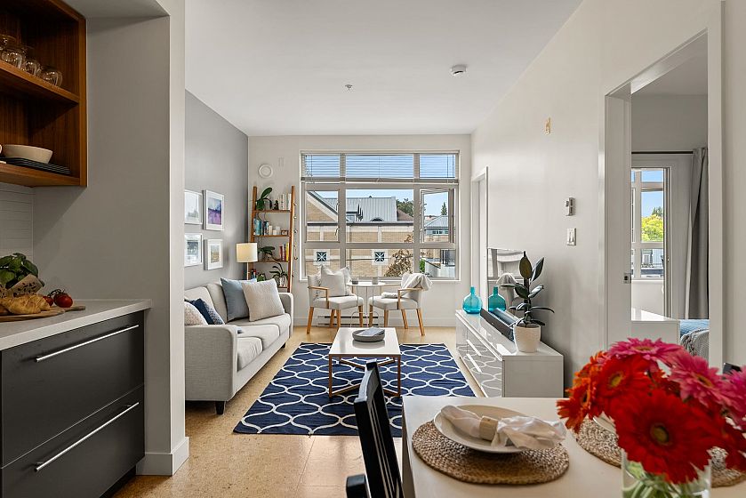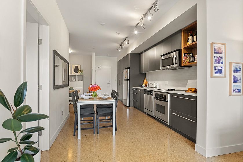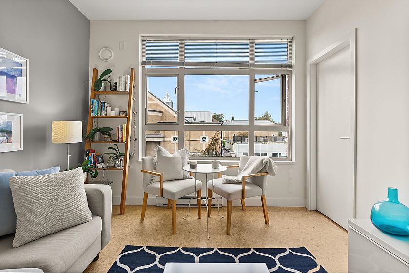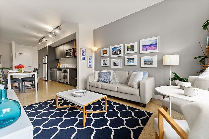 Modern 1 bed + den, 1 bath home in the boutique Domain Building, Mount Pleasant. 732 SF with open layout, 1 parking, in suite storage room (could be an office), bike room + workshop. Pets welcome (2 max dogs/cats). Friendly, well-maintained building built in 2008 with 50 residential units. EV infrastructure in place and proactive in projects - ask us for the strata summary. Perfect for first-time buyers or anyone craving the Main Street lifestyle. Surrounded by cafes, breweries, restaurants, and shops—everything you need is just steps away. Live, work, and play in one of Vancouver’s most vibrant neighborhoods! Open House Saturday November 8th 2:00-4:00pm