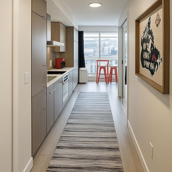 Perfect starter home for First Time Buyers, Investment or Pied-a-Terre in Olympic Village. Welcome to a vibrant and effortless waterfront lifestyle in the sought after Olympic Village. Just steps to the seawall, SkyTrain, Canada Line, UBC bus, parks, marine recreation, and the Village Plaza which includes Urban Fare. London Drugs, shops and eateries. Downtown is only minutes away. This modern, open-plan junior one bedroom plus den is both stylish and versatile. The den is customized as a walk-in closet/storage space but could easily be transformed into an office. Interior features include sleek Euro appliances, induction cooktop, built-in oven, front loading washer/dryer, quartz Carrera counters and backsplash, wide-plank laminate flooring, and contemporary sliding bedroom doors.