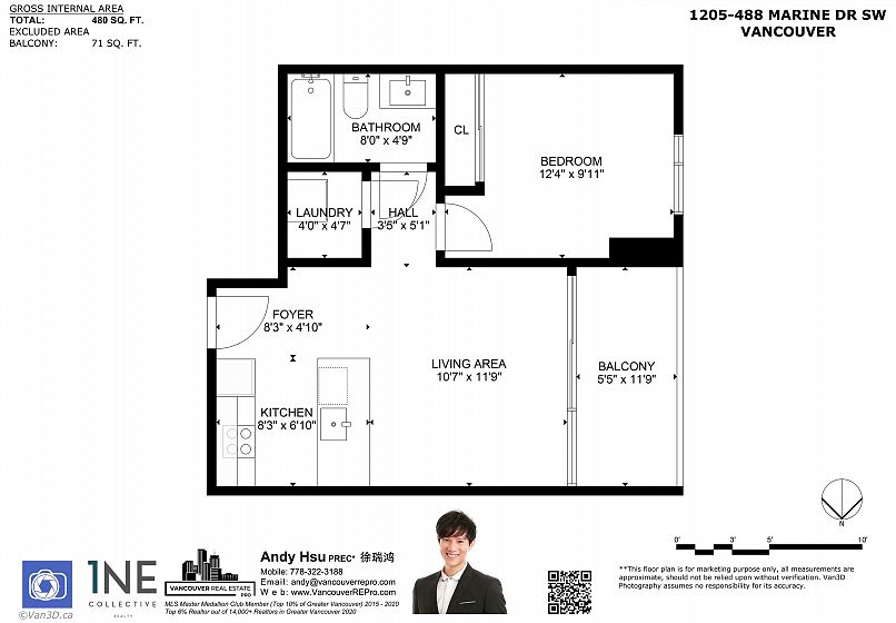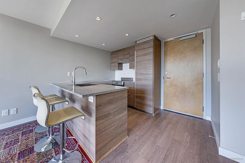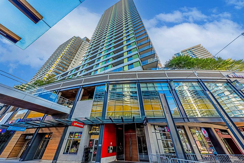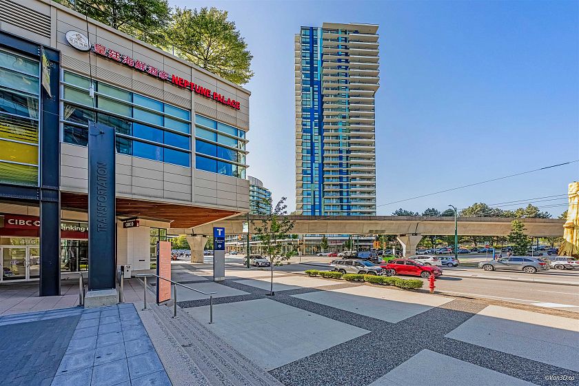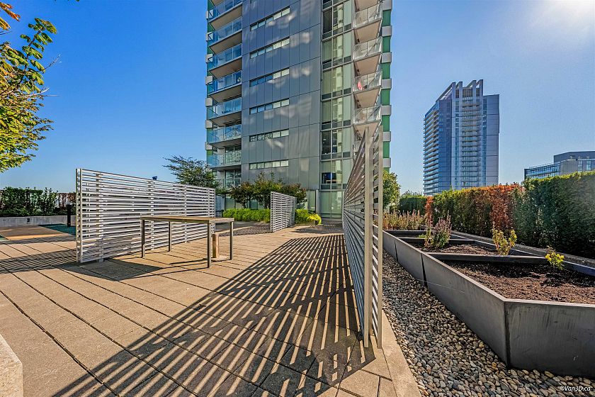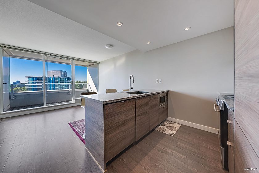 Marine Gateway by PCI Developments offers everything at your doorstep! This LEED gold community presents a 1 BED residence with a larger covered balcony & spectacular west-sider sunsets. The gourmet galley kitchen is equipped with stone counters, full-height cabinetry, integrated Blomberg appliances, task lighting & smooth-top stove. In-suite laundry & strong add practicality. Building highlights include a lounge, rooftop terrace w/BBQ & playground. Just downstairs, you'll find Cineplex, T&T, banks, Shoppers, Starbucks, restaurants & direct Canada Line/Bus Loop access. Great starter Home or rental investment! Parking available, please ask