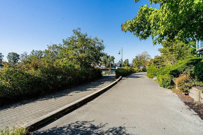 Waterfront Living! Introducing this lovely large 1 bedroom and 1 bathroom condo with private, treed views overlooking the pathway with peek-a-boo views to the Fraser River (more with winter views!). This updated home offers comfortable living with a gas fireplace, in-suite laundry, an open kitchen with pantry, and bedroom with sliding doors to large covered balcony, with walk in closet leading to the bathroom. There are fantastic amenities including a large fitness center with hot tub/balcony upstairs, and party room on main. Two Pets are welcome, 1 parking and bike room. Shopping at River District, Champlain Square, walk the sea walk along Fraser River, or walk to Riverfront Park, while easy access to get to YVR Airport. Great value!