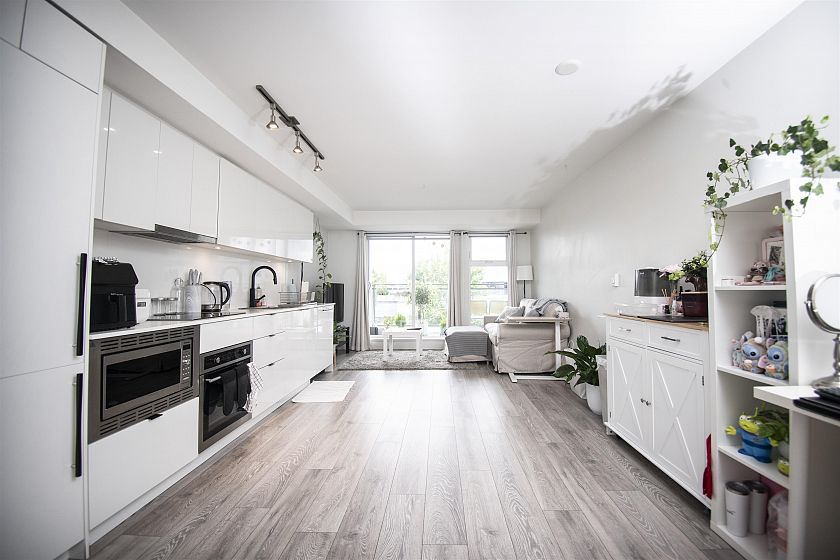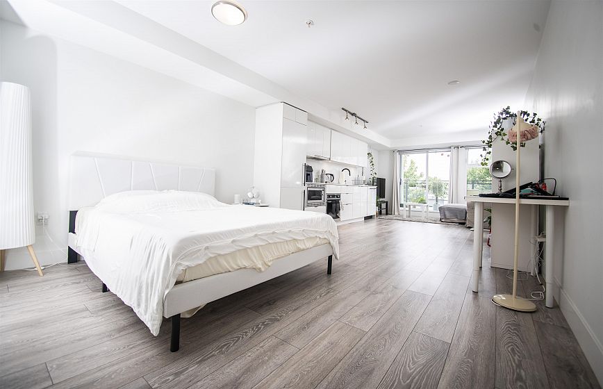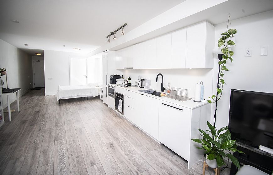 Midtown Modern is conveniently located in central Vancouver! This fashionable studio/junior 1 bedroom suite offers an excellent opportunity for first-time home buyers and real estate investors. With top-of-the-range integrated appliances and cozy bathroom floor heating, comfortability is top tier. The floor-to-ceiling windows allow for an abundance of light in the living area and shade in the bedroom area. On your private patio, you can enjoy unobstructed mountain views and a refreshing breeze. You are close to restaurants, shopping, and recreation in an everchanging Mount Pleasant area. The suite comes with one underground parking spot, a bike locker, and storage locker.