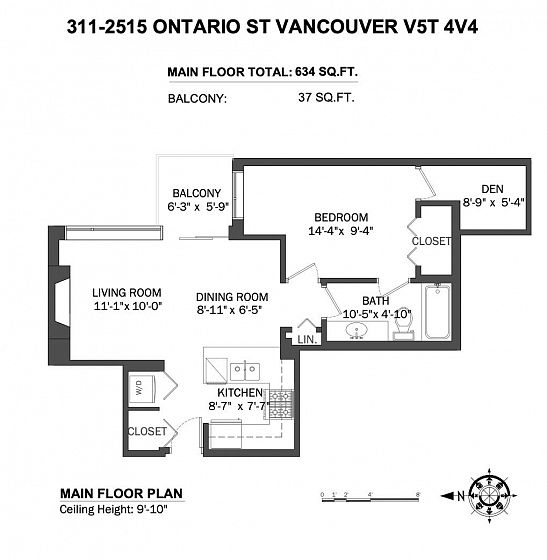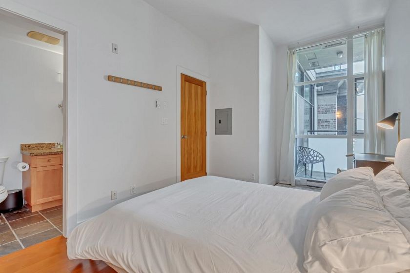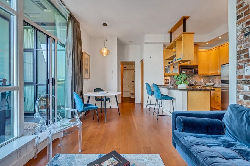 Welcome to The Elements – a boutique concrete building in the heart of Mount Pleasant! This bright and stylish 1 bed + flex corner unit features reclaimed fir floors, a brick feature wall, 10' ceilings, and floor-to-ceiling windows with exposures on two sides. The gourmet kitchen offers warm wood cabinetry, stainless steel appliances, and a gas range. Cozy up by the gas fireplace or enjoy the balcony perfect for BBQs. The flex space is ideal for a home office or walk-in closet. Includes 1 parking, storage locker, bike room, exercise room, and library. Steps to Main St, restaurants, shops, and the future Broadway subway. Pet and rental friendly in a solid, well-run building!