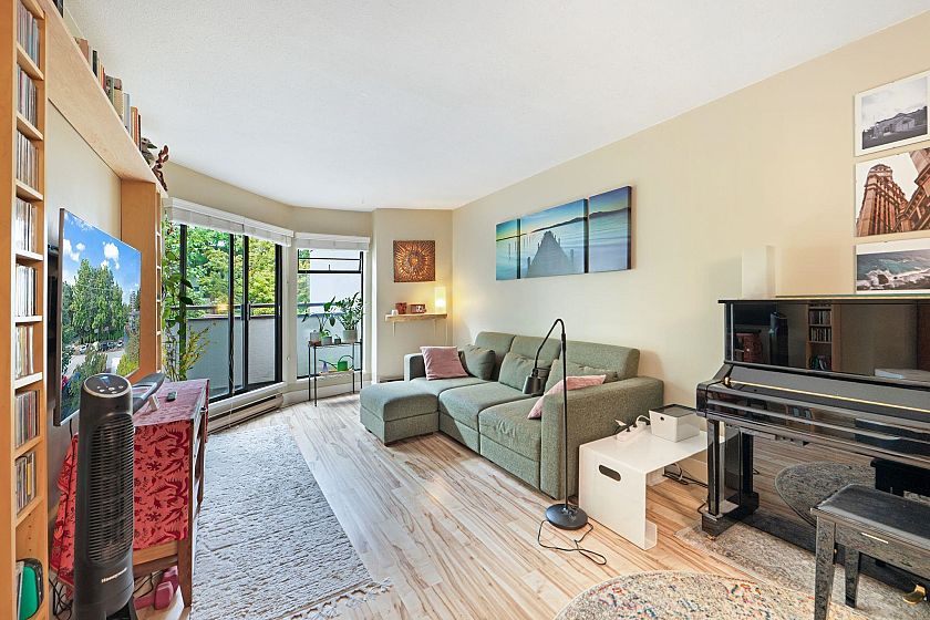 Welcome to this large 1 bedroom + 1 bath home strategically located above the building's lobby (no downstairs neighbors!) in the heart of Mount Pleasant. The building is surrounded by trees which offers great privacy yet the condo faces west so it gets plenty of light year round. Updated flooring and a functional kitchen + large walk in pantry. A huge bedroom with ample closet space and secondary access to the your private balcony, perfect for relaxing. 1 parking + 1 big storage locker + secured bike room too. The building also offers a shared rooftop patio perfect for summer gatherings. Steps to Main Street’s trendy shops, restaurants, cafes, breweries, and transit. A pet-friendly building in a vibrant, highly walkable neighborhood. The location can't be beat!