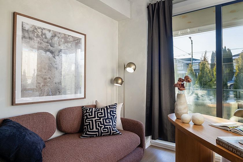 Move-in ready now with a limited-time, 5% credit off all homes! This 1-bedroom + den, 1-bath corner home features a wrap-around patio, perfect for relaxing or entertaining. Includes floor-to-ceiling windows, 9’ ceilings, engineered hardwood, A/C, a full-size LG washer and dryer, and a modern kitchen with smart storage, a dining island, and 30” integrated Bosch appliances. Enjoy access to SkyHaven—Ortus’ 4,000 sq.ft. rooftop oasis for both relaxation and socializing while taking in the sweeping views. Steps to Marine Gateway and Oakridge Centre. Don’t miss out—book your tour today or join us this weekend for our open house sat and sun from 1-4pm.
