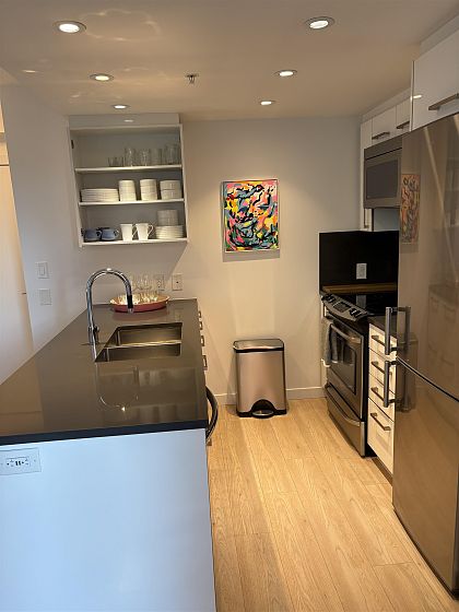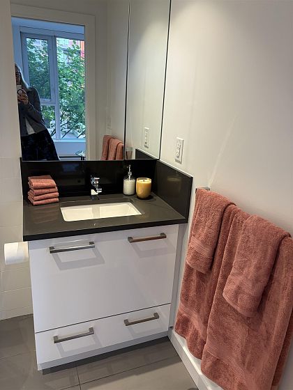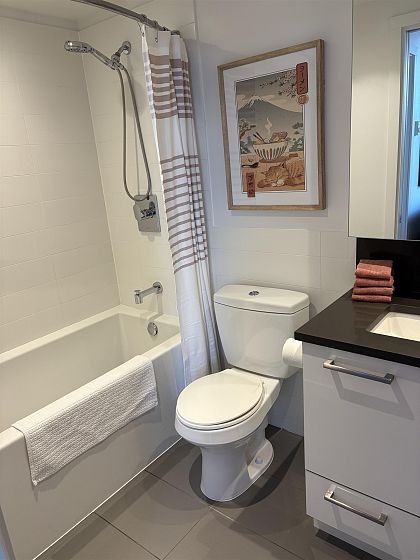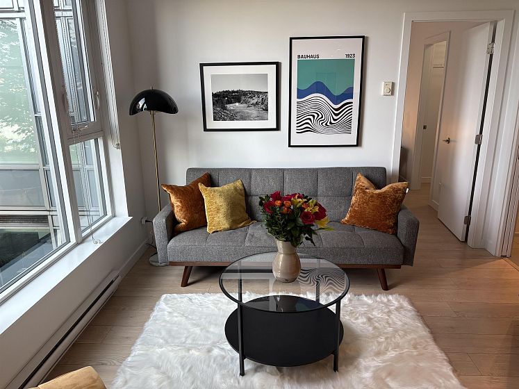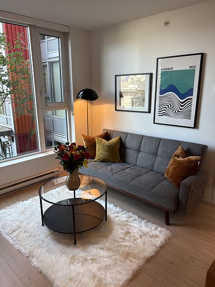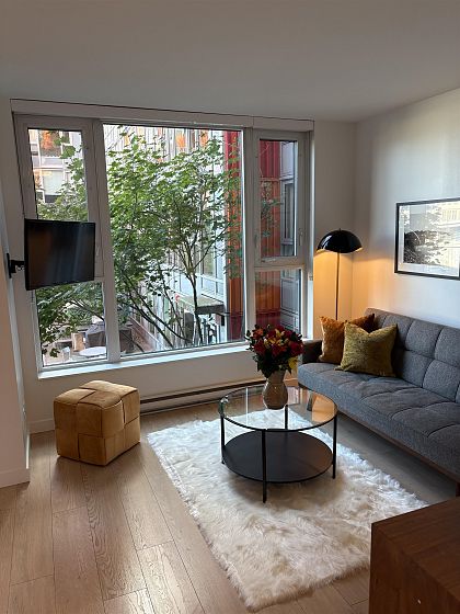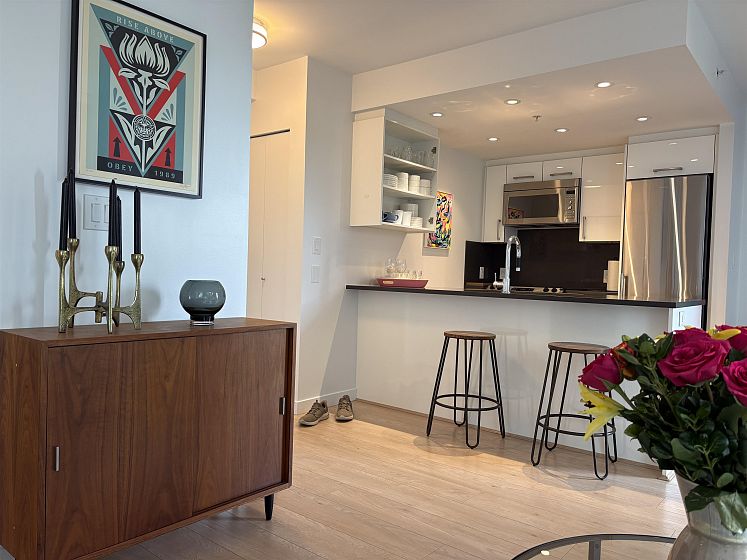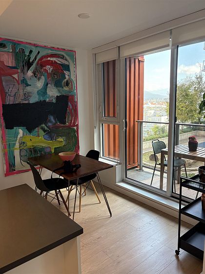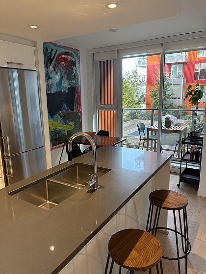 Experience the best of East Van living at Strathcona Village! This stylish 1-bedroom retreat blends urban cool with serene calm, offering a wide, light-filled floorplan and a private balcony overlooking the quiet courtyard with city and North Shore Mountain views—perfect for morning coffee or evening wind-downs. Just steps from indie cafés, breweries, galleries, and markets in Strathcona, Gastown, Commercial Drive, and East Village. Inside, enjoy laminate floors, stainless appliances, solid counters, Sonetto double sink, in-suite laundry, and a generous walk-in closet. Residents also have access to a gym, rooftop gardens, and community garden plots. Parking and storage included—modern city living with a peaceful edge. OPEN HOUSE SUNDAY SEPT. 28th, 1-4 p.m. Open to offers!