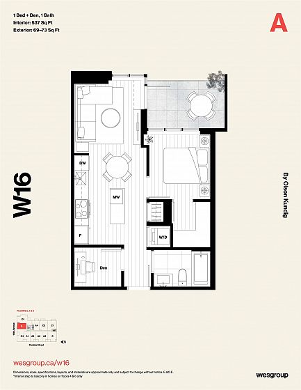 Welcome to W16, an exclusive collection of 53 homes by world-renowned Olson Kundig, ideally located in the heart of Cambie Village with close access to downtown, parks, shops, and transit. This intelligently designed one-bedroom + den home offers a bright, open layout with soaring 10' ceilings. The primary bedroom includes a large walk-in closet, while the spacious den provides flexibility for a home office, creative space, or additional storage. A modern kitchen with sleek Miele appliances and Italian Stosa Cucine cabinetry adds style and function, complemented by a private balcony for outdoor living. Visit our Presentation Centre at 4033 Cambie Street, open Fridays & Saturdays 11am–4pm. Call or email us for more details.