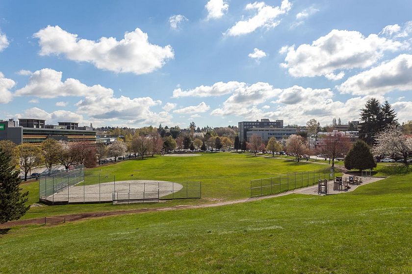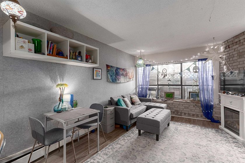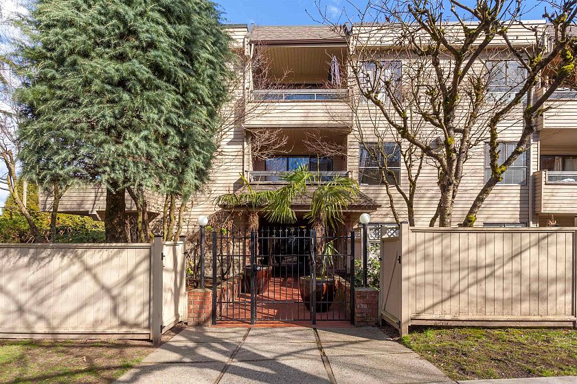 Bright corner unit in quiet and serene location! This nicely laid out junior 1 bedroom looks larger than its square footage. Enjoy open concept living and spacious patios surrounded by trees. Freshly painted, vinyl flooring and updated kitchen make this unit ready to move in. Well maintained Landmark building offers secure underground parking and full size storage locker. Strata fees include heat and hot water. Conveniently close to Broadway, Emily Carr, Main St, and a short drive to Downtown. Great for first time buyers, investors, or to be used as a pied-a-terre.