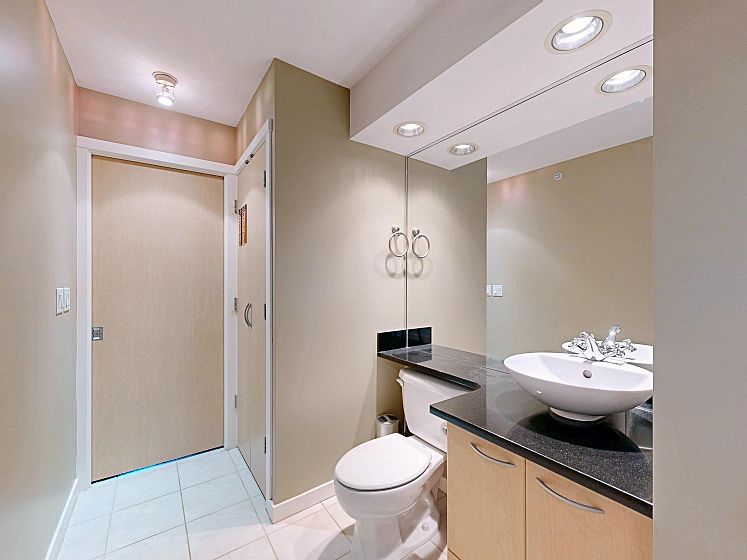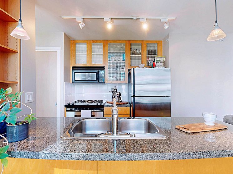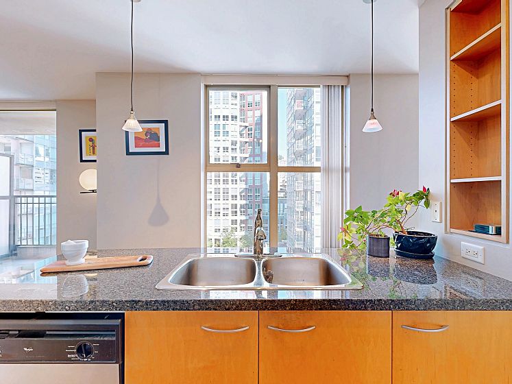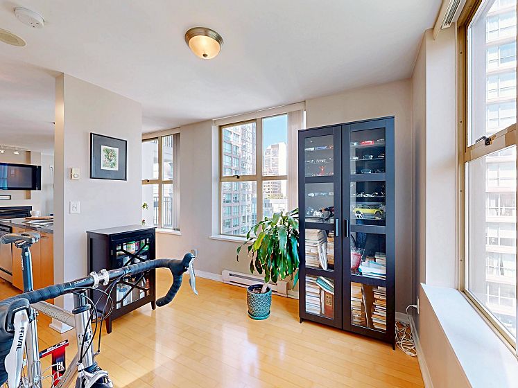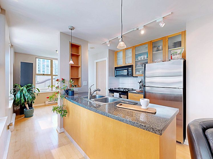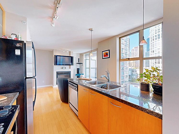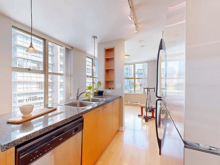 Welcome to Mondrian 2 by Bosa. This 1 bed, 1 bath corner unit condo just steps from Yaletown with top restaurants, shopping, and transit. As you enter, a spacious walk-in closet greets you on the right—perfect for storage and organization. Continue inside to a versatile open area that can serve as your living or dining room. The open kitchen sits at the heart of the home, ideal for entertaining. Beyond the kitchen, another flexible space awaits—use it as a second living area or dining nook. Tucked quietly at the back, the bedroom offers privacy and comfort, with a generously sized bathroom & upgraded shower. The best of urban living awaits!