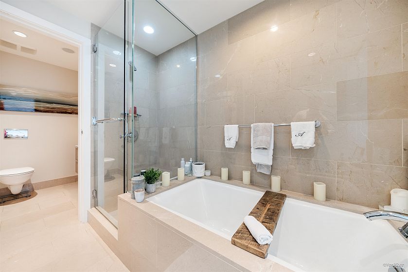 This spacious home combines the elegance of a world-class hotel lifestyle with the comfort of sophisticated modern design. Floor-to-ceiling windows with motorized roller shades, highlighting rich hardwood floors and sleek contemporary finishes. Thoughtfully upgraded with built-in speakers in every room and custom oak media cabinetry, every detail has been curated for comfort and convenience. Gourmet kitchen featuring Miele and Sub-Zero appliances, polished granite countertops, and luxurious Eggersman cabinetry. As a resident, indulge in the exclusive Shangri-La amenities: 24-hour concierge, state-of-the-art fitness centre, pool, hot tub, and more - all with luxury shopping, fine dining, and the best of downtown Vancouver just steps from your door. 1 parking with private storage room.