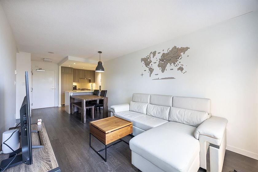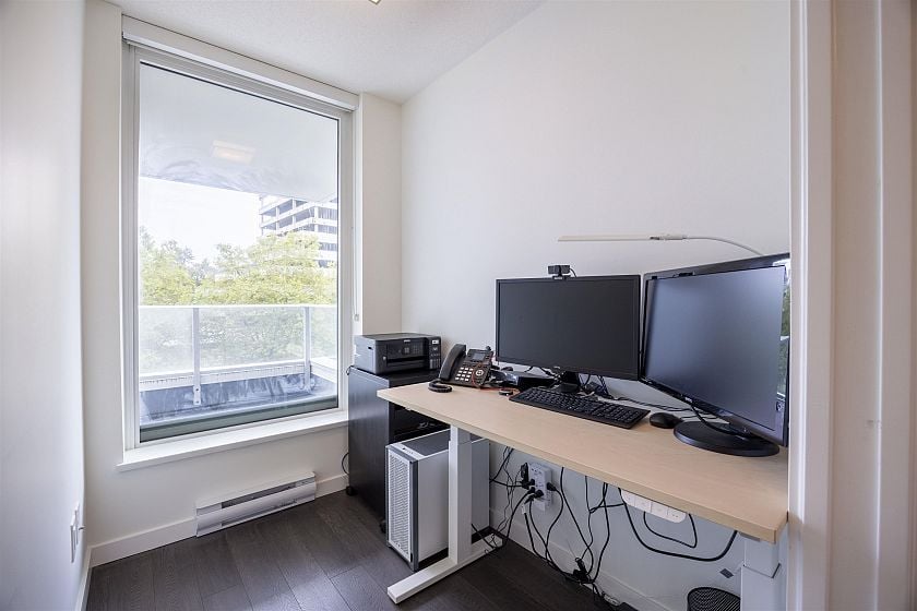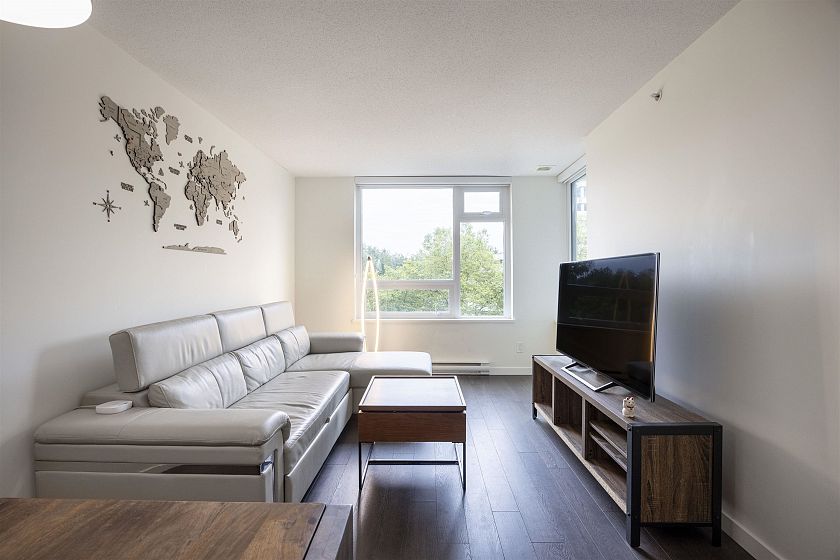 Fantastic opportunity to own at the highly sought after Wall Centre Central Park by Wall Financial! This large, bright & spacious 1 bed + 1 bath + den + flex wastes no space. Facing East w/ minimal SkyTrain exposure/noise. Features including wide plank laminate & tile flooring, sleek quarts countertops, integrated S/S appliances (including a gas stove) & custom bathroom vanity w/ extra storage. Centrally located near the Joyce SkyTrain Station, Central Park, only steps away from the Kingsway Shops, Metrotown Shopping Centre, Crystal Mall, Collingwood Neighbourhood House, etc. Amenities including 2 fully equipped gyms, a 60-ft lap swimming pool, hot tubs, rooftop terrace and much more! Unit comes with 1 parking, available to upgrade to EV charging. Don't miss out!