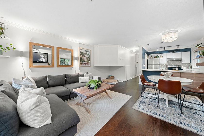A rare, oversized 1-bedroom corner unit combining space, style, and privacy! A split-level entry with soaring ceilings leads to a bright layout. Excellent separation between the generous sized bedroom and updated kitchen and living space, plus a full bath with soaker tub, in-suite laundry, and a cozy gas fireplace. This corner layout runs front to back with two fully fenced private patios—one bathed in sun, the other a cool retreat. Rainscreened in 2007 with a healthy contingency fund and low strata fees, this well-kept boutique building offers peace of mind in a vibrant, walkable neighborhood. Just minutes to downtown, the North Shore, or local favorites on Powell Street, this is a vibrant neighborhood with a welcoming community you’ll love coming home to. Pets allowed & 1 secure parking