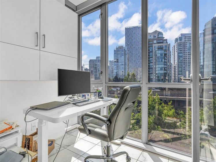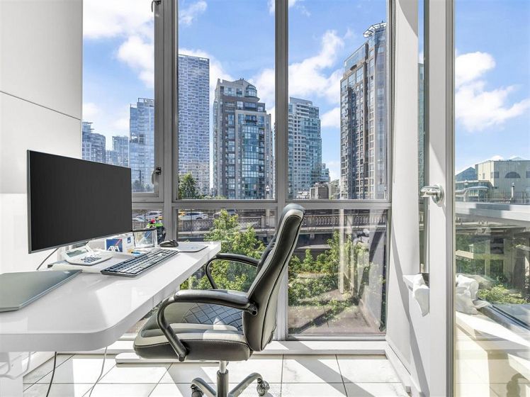 Welcome to The Alvar by Concert Properties! This beautiful 1 bed + den home features a functional kitchen with granite countertops, stainless steel appliances, gas range stove, and island with bar seating And in unit Heat Pump providing comfort of Air conditioning in the summer and heat in the winter. Just off the kitchen is an airy and bright living space with 9 ft ceilings and an electric fireplace. Conveniently located in the West End near shopping, restaurants, and steps from the Seawall. Enjoy the amenities: fitness centre, whirlpool hot tub, lounge with outdoor patio, and BBQ. Comes with 1 parking & 1 storage. Call to book your showing! Open House Saturday October 18th from 2-4pm.