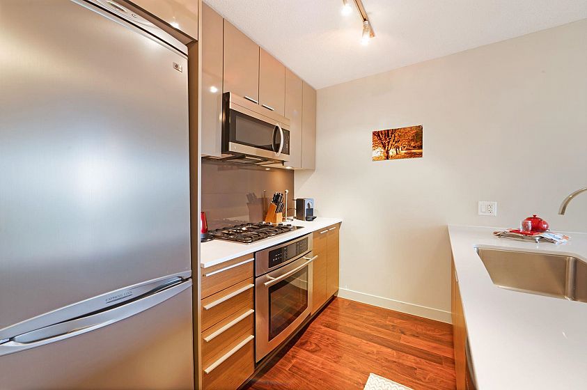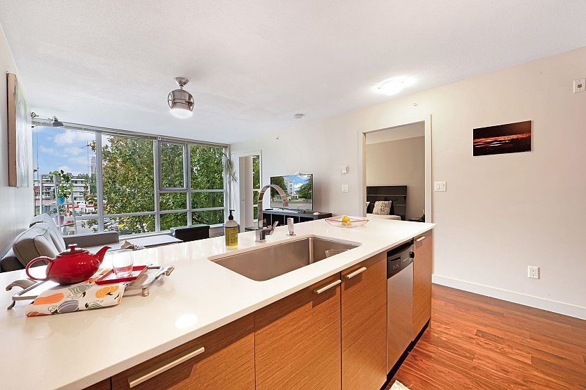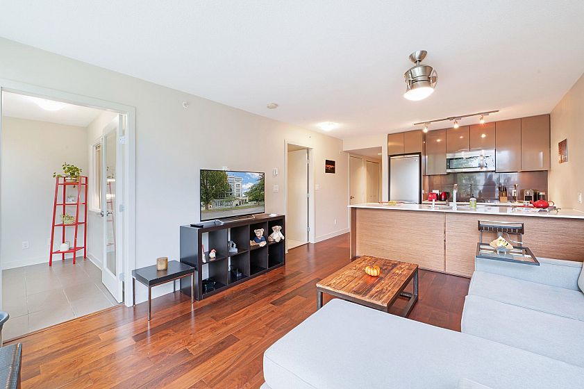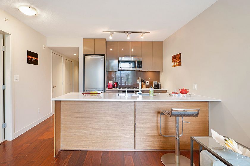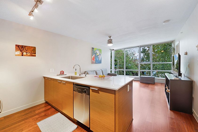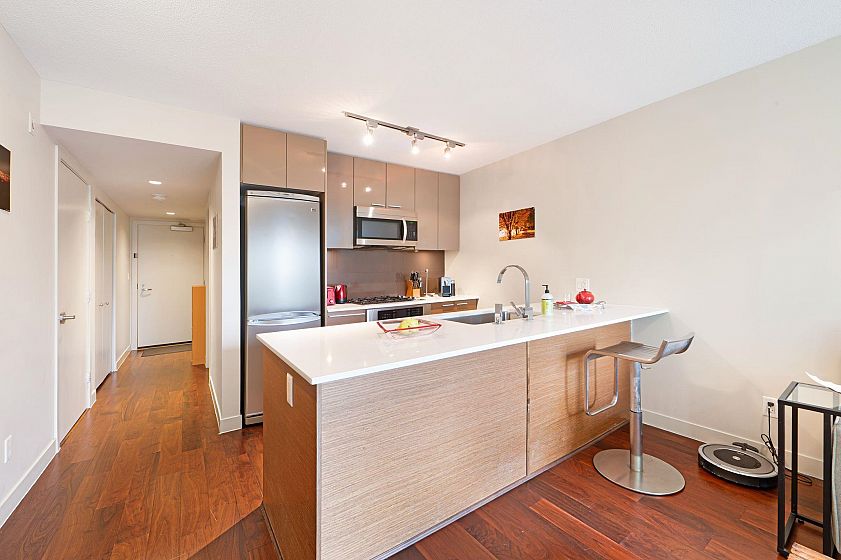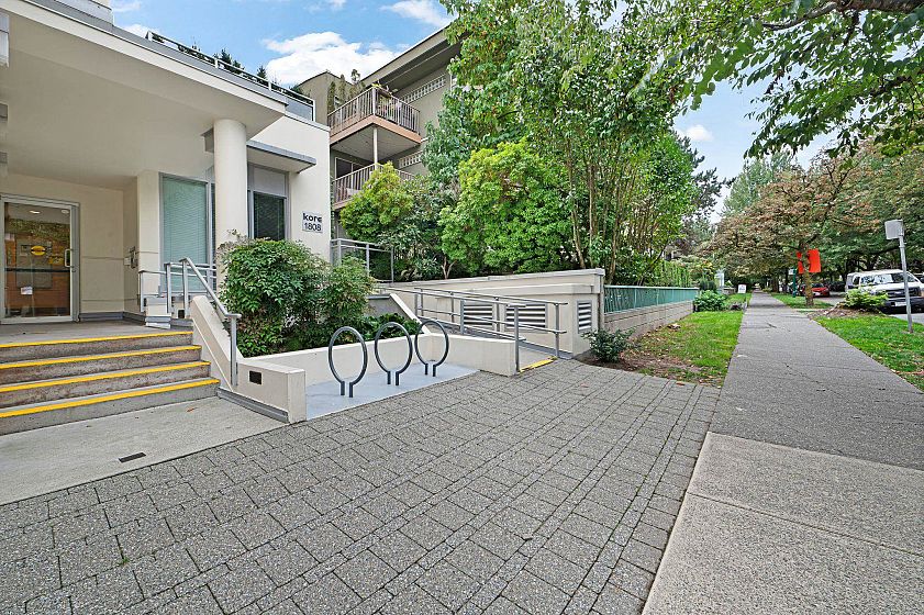 This one won't last long! Welcome to Kore – a boutique concrete building in prime Kitsilano, just blocks from Kits Beach, Granville Island, the Seawall, and top restaurants and shops on 4th Ave. Express bus to UBC and Downtown is only steps away. This spacious and immaculate 1 bed + den offers floor-to-ceiling windows with partial mountain views and faces the quiet tree-lined 3rd Ave. Features include an open kitchen with gas range, quartz countertops, S/S appliances, and a bonus in-suite storage room. The den with floor-to-ceiling windows is perfect for a home office. Building amenities: gym, bike storage, meeting room, and garden patio. 1 parking included. Pets and rentals allowed. A perfect home or turnkey investment in one of Vancouver’s most desirable neighbourhoods!