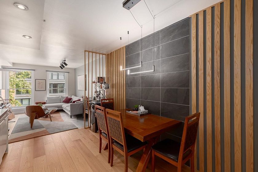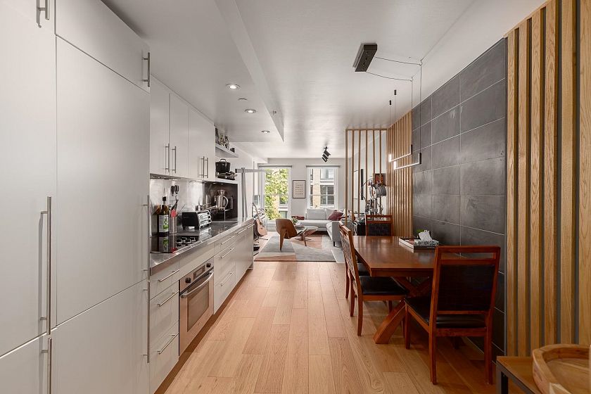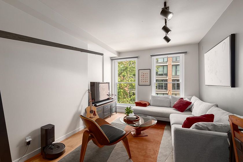 Discover the perfect balance of old-world charm and modern sophistication in this beautifully crafted residence at Terminus, one of Gastown's best boutique buildings! Set against a backdrop of cobblestone streets and historic architecture, this property offers over 900 SF of living space with integrated cabinetry, AC, and clever design and storage solutions throughout. The large windows allow natural light to flood the space highlighting the clean lines and polished finishes. The open-concept layout seamlessly connects the kitchen, dining, and living area. There is also a shared rooftop deck with fantastic views of the Vancouver skyline. Steps to the best restaurants, bars and hot spots in the City! 1 Parking included. Pets and rentals OK with restrictions.