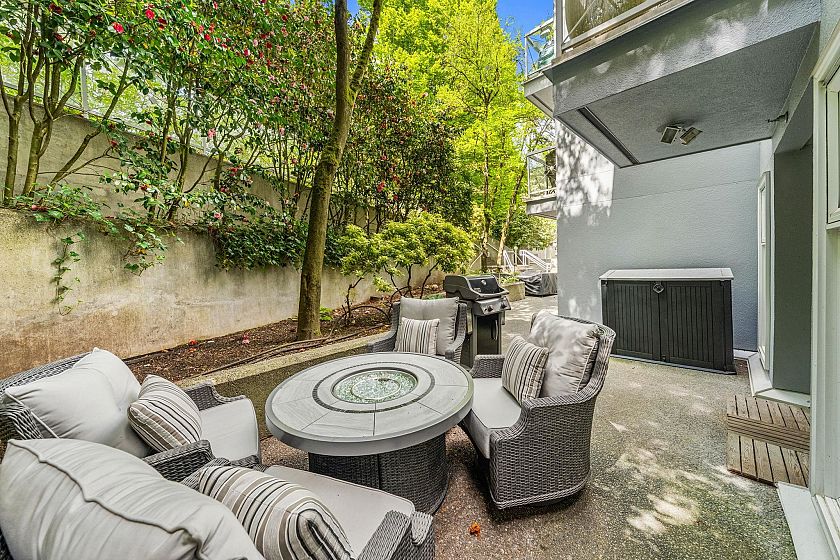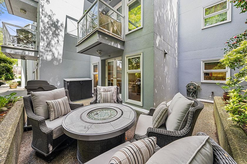 Welcome to this oversized 1 bed, 1 bath townhouse-style condo in the heart of prestigious Shaughnessy. This bright and airy home features its own private entrance, offering a tranquil, house-like feel with abundant natural light throughout. A gigantic kitchen and tons of counterspace for the chef of the family. Enjoy seamless indoor-outdoor living with with generous private patio space—perfect for relaxing, entertaining and enjoying those long summer Vancouver nights. Thoughtfully designed with spacious living areas, 1 secure parking stall, and a storage locker. Tucked away in one of Vancouver’s most sought-after neighbourhoods, you'll love the quiet charm while being just minutes to shops, transit, and parks. A very rare to find a condo Shaughnessy don’t miss out on this one!