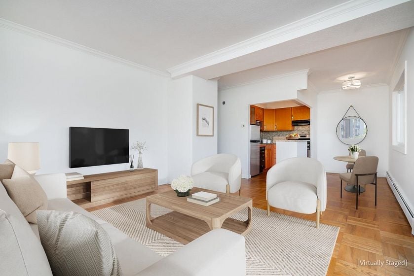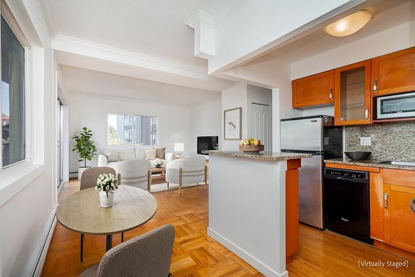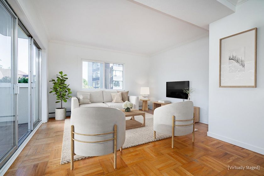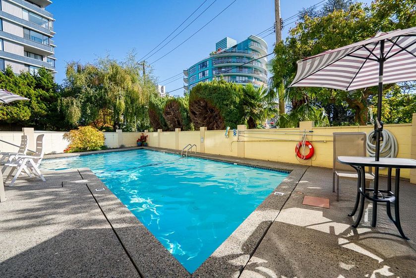 Don't miss this rare opportunity to own a bright and spacious 1-bedroom concrete apartment in Surfside Towers. This suite offers an open and inviting interior with approximately 600 sq. ft. of light-filled and airy living space, featuring hardwood floors and fresh paint throughout, plus a large outdoor terrace showcasing beautiful views of the North Shore mountains. Residents enjoy access to a saltwater pool and the unbeatable convenience of this prime location - just steps from the seawall, recreation centre, seniors centre, public library and Dundarave Village. The suite includes 1 parking stall and 1 storage locker. Surfside Towers is an extremely well-maintained building, reflecting true pride of ownership.