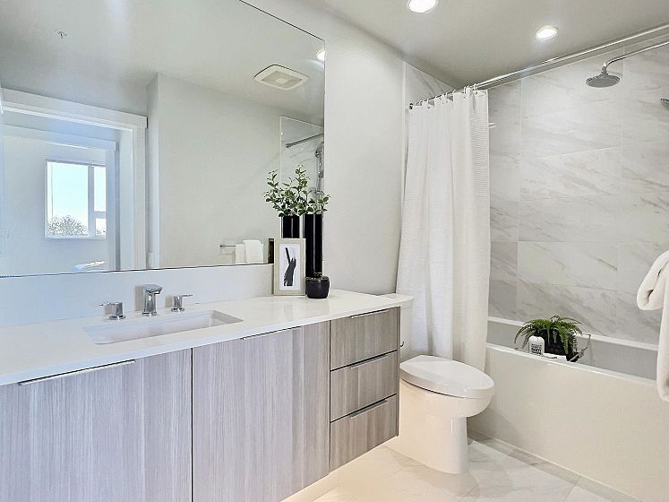 1 BED WITH UNOBSTRUCTED WATER VIEWS – PERFECT FOR FIRST-TIME BUYERS OR INVESTORS! Welcome to R+R by Polygon in the desirable River District! This bright 1 bed, 1 bath home features a functional open floor plan with 9 ft ceilings, a modern kitchen, and a spacious walk-in closet. Pet-friendly (2 dogs/cats or 1 of each) and packed with amenities: visitor parking, 1 parking spot, storage locker, dog wash station, outdoor party area, playground, and full gym. Strata fees include heat and hot water, plus the balance of the 2-5-10 warranty offers peace of mind. Located on the quiet side with no commercial units below, yet just steps to the waterfront trail, Romer’s, Shoppers Drug Mart, Save-On-Foods, Starbucks, and more dining and shopping options nearby! OPEN HOUSE SUN OCT 5th 12pm-2pm