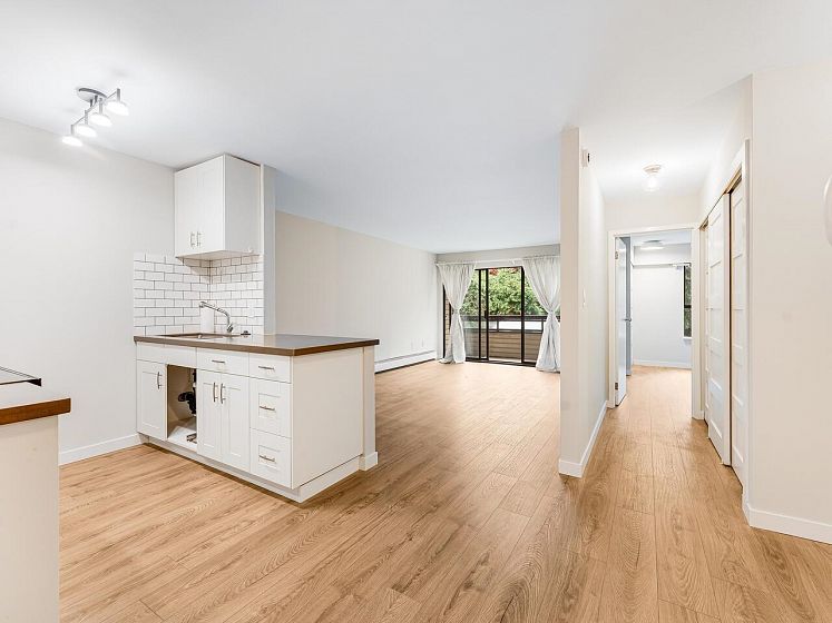 Fantastic LOCATION! This fully updated 1 bed/1 bath 620 sf home is move-in ready. Renovations include new laminate floors, retiled bathroom floors, fresh paint, and a beautifully redone kitchen with new appliances, backsplash, lighting, and hood fan. Maintenance fees cover heat & hot water. Comes with 1 oversized parking stall, a large storage locker, and access to shared laundry. Perfect for first-time Buyers. Join us at the Open House Sat Oct. 18, 2-4pm