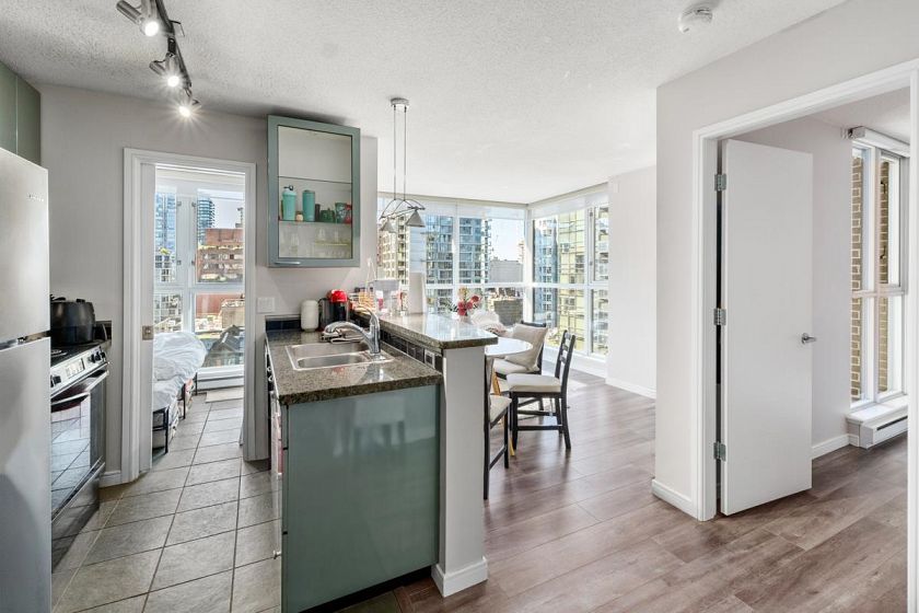 Located in the heart of Downtown Vancouver at The Canadian at Wall Centre, this bright and well-maintained 1-bedroom, 1-bathroom suite on the 15th floor offers beautiful city views through floor-to-ceiling windows. The home features an efficient open layout with a functional kitchen, full-sized appliances, a spacious living area, in-suite laundry, and a private balcony to enjoy the downtown atmosphere. The building provides 24-hour concierge service, secure underground parking, bike storage, and optional access to the Wall Centre fitness facilities.