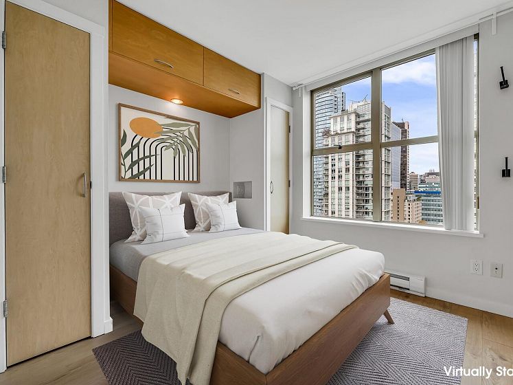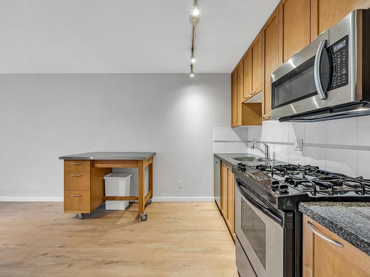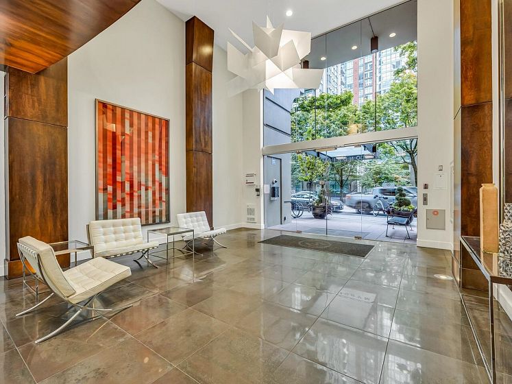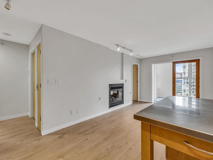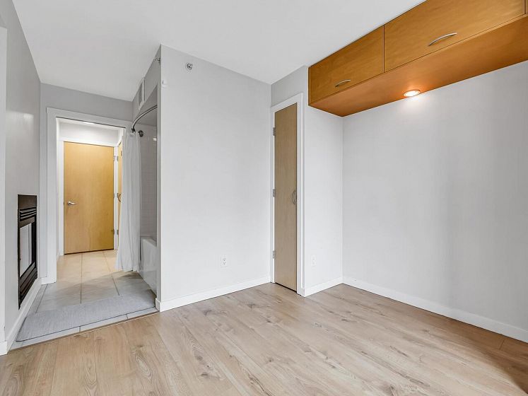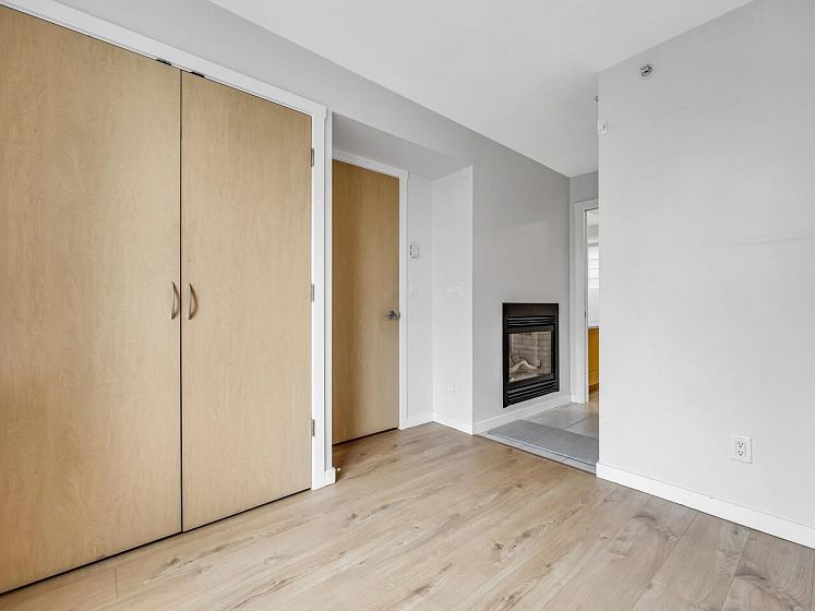 Mondrian II by Bosa! This 1 bedroom & den + flexspace comes with legendary BOSA finishings throughout. Open living and dining area; granite kitchen countertops; stainless steel appliances; and moveable stainless top kitchen island with extra storage space. The bathroom features a deep soaker tub with European fixtures & bowl sink. Also a dual sided fireplace that can be enjoyed in either the living room or the bath. Brand new, high-end laminate floors throughout! Enjoy great Yaletown views with this being set-back from neighbouring towers. 1 parking space & 1 storage locker included. Perfect suite in pro-active, quality built building!