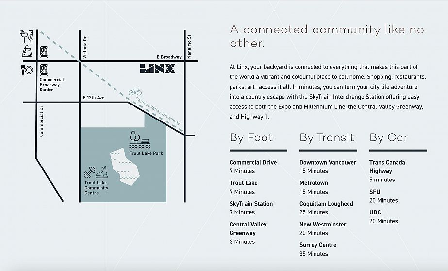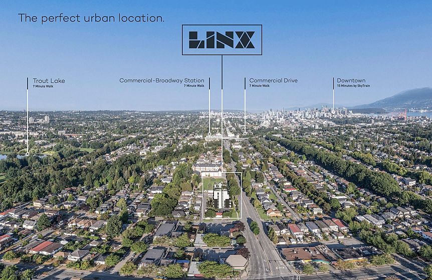 LINX by Lotus Capital in vibrant Grandview-Woodland. This 1 bed + flex home offers 548 sq ft of efficient living plus a 100 sq ft balcony for seamless indoor-outdoor flow. The modern kitchen features quartz countertops, integrated European appliances and sleek two-tone cabinetry. Floor-to-ceiling windows draw in natural light throughout. The flex space suits an office or storage, and the primary bedroom includes a walk-in closet. Upgraded bike locker included. Estimated completion in November. Near Trout Lake and Commercial Drive’s cafés, shops & restaurants, plus access to a private park and courtyard on site. Residents enjoy amenities including a rooftop lounge with BBQ and fire pit, co-working space with kitchen, community garden, kids’ play area & secure bike storage. MOTIVATED seller!