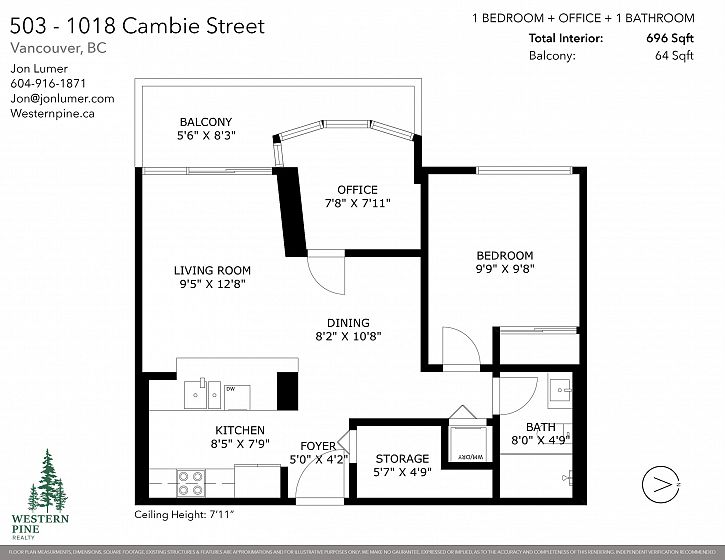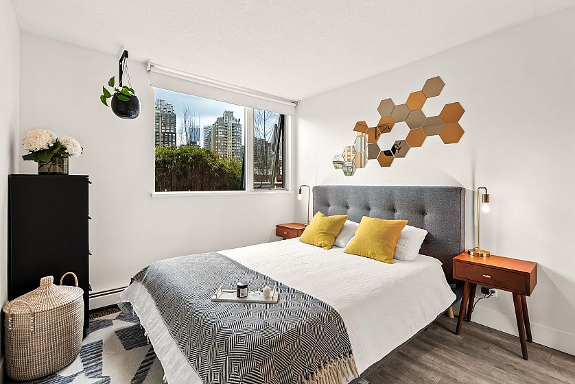 Unlike any other unit currently listed in Yaletown. This immaculate home has been beautifully maintained and well-loved by it's owners. Remarkable floor plan with spacious living area, dining area, kitchen, bedroom, spa-like bathroom, in-suite storage, and yes, a sizeable private office with windows. Floors are updated. Bathroom entirely redone with a very modern aesthetic. Kitchen cabinetry, countertops, and fixtures have also been updated. Stylistic touches throughout make the home truly stand out in a crowd. Balcony space not available on other floors with this plan. Ample room for BBQ and seating. Marvelous amenities within the complex such as lap pool, fitness centre, and squash court. Outdoor common areas are also spectacular. Unit comes with parking. One dog or one cat ok.