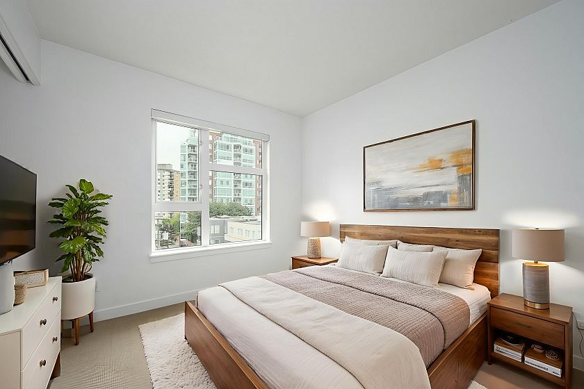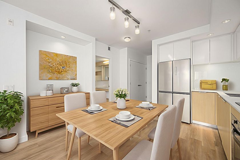 Welcome to The Versatile by Intracorp in the heart of Lower Lonsdale! This bright 1 bed + den features an open layout, modern kitchen with quartz counters & s/s appliances (Fisher & Paykel, Blomberg, Fulgor, Maytag), and a sunny outdoor space that expands your living area. Spacious den is perfect for a home office or yoga room. King-sized bedroom with room for nightstands. Walkscore of 100 – steps to Shipyards, SeaBus, shops & dining. Pets & rentals allowed. 1 parking & storage included. Urban living at its best!