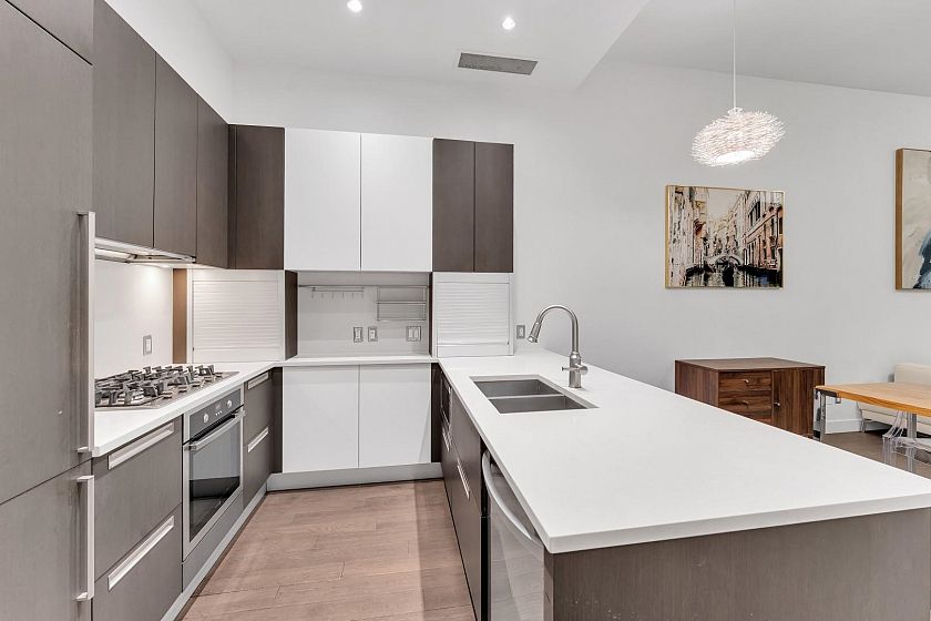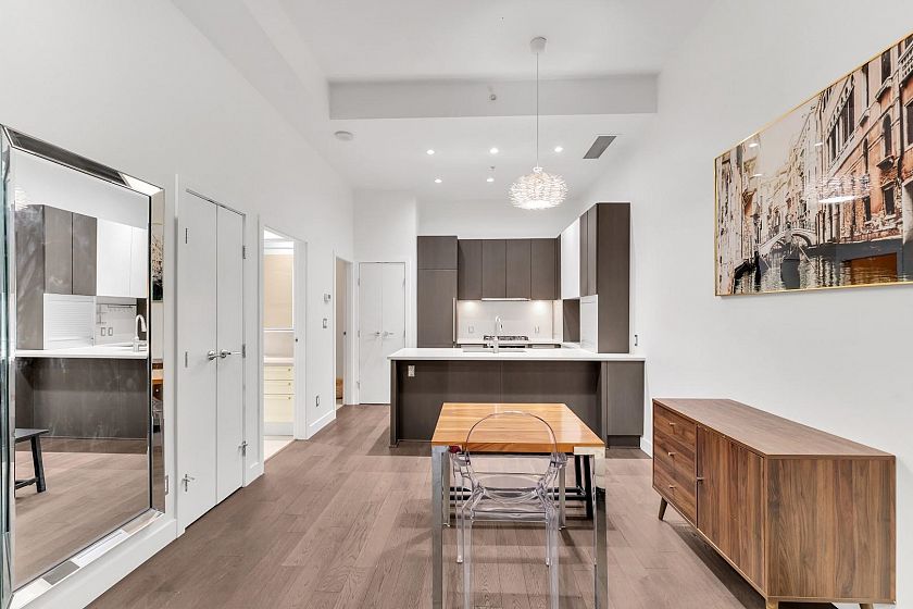 JAMES by Cressey! This bright, south-facing garden home offers townhouse-style living with a private front entrance and a spacious open-concept layout. Featuring 11’ ceilings, engineered hardwood floors, air conditioning, and a gas cooktop, every detail showcases Cressey’s signature quality and craftsmanship. Step outside to your private patio with a gas BBQ hookup, or take advantage of the building’s resort-style amenities—including a concierge, fitness centre, sauna, rooftop lounge, and a lush outdoor garden with panoramic views. Perfectly located, you’re just minutes from the Olympic Village SkyTrain station, Urban Fare, London Drugs, and the Seawall. A rare opportunity to own a home that truly has it all—style, comfort, and unbeatable convenience.