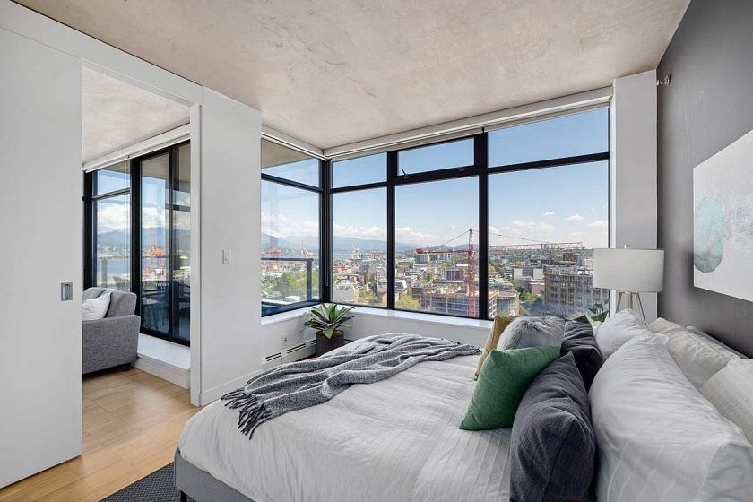 Over 800 SF in this fantastic and coveted 01 floor plan corner unit, with tons of gorgeous light from the floor to ceiling windows that brings in stunning, panoramic views to every room. Modern, spacious & open home with a spa bathroom, plenty of storage & over height concrete ceilings. Comes w/ one secured underground parking; owned not leased, insuite laundry, gas range, Club W membership which includes indoor/outdoor lounge, fitness center, hot tub & media room & a concierge. Strata fee incls heat, hot water & high speed internet. Own a piece of Vancouver history in Gastown’s iconic Woodward's Building, steps from great restaurants, shopping, downtown, the upcoming Amazon development, seawall and more. Unobstructed, ocean, mountain and city views that will take your breath away!