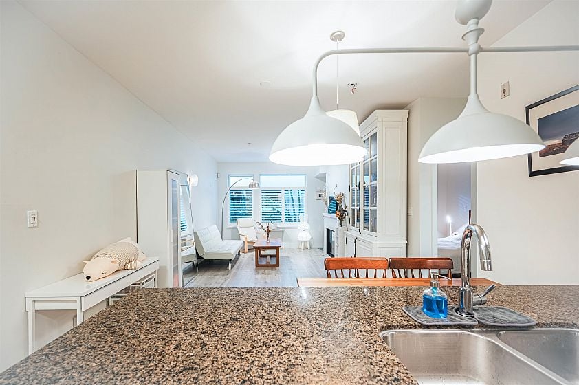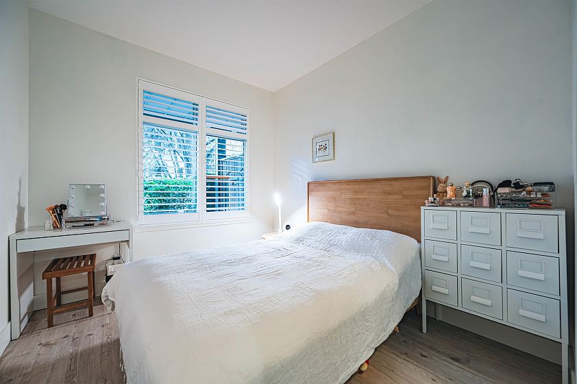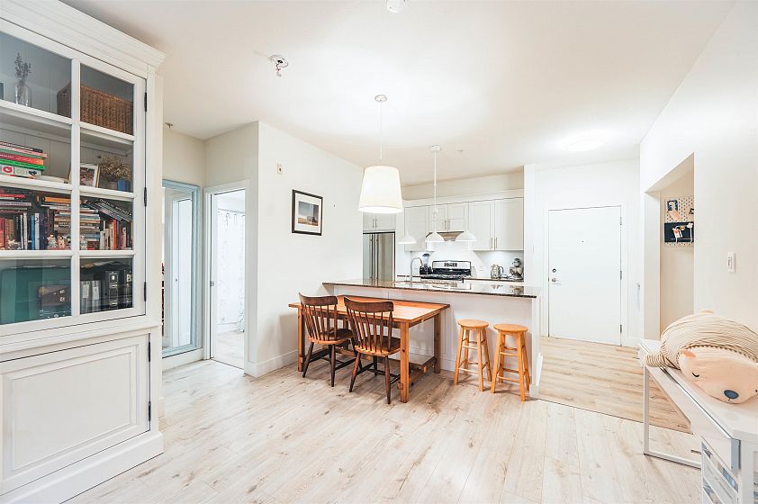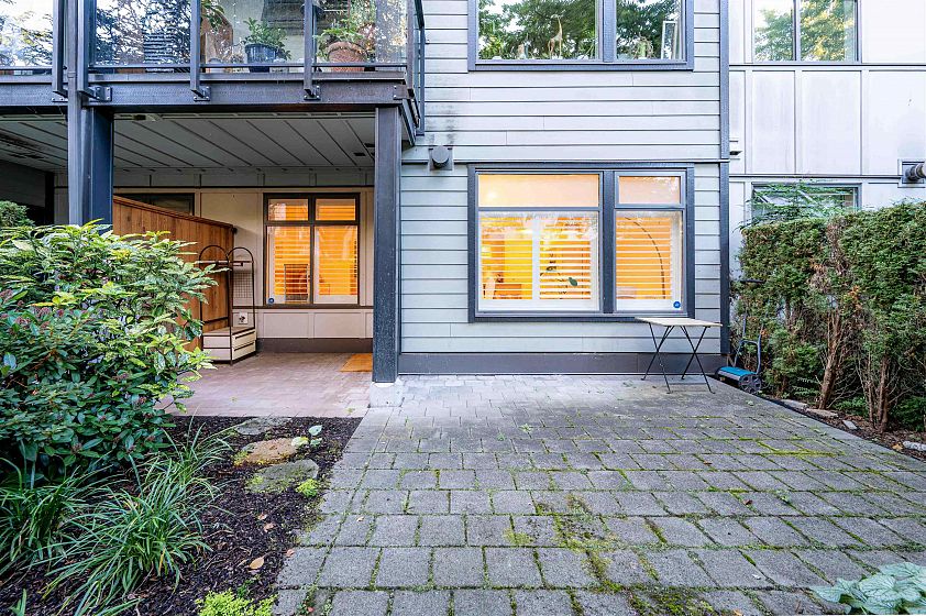 Welcome home for this stunning residence in Folio by Intracorp! This large 1 Bed + 1 Bath + Den unit has been tastefully renovated and is move-in or rent ready. Updates include a gourmet kitchen with custom millwork and deep drawers, full size LG washer/dryer & additional pantry cabinets, new laminate flooring, plantation shutters, and a high-end appliance package with a 30' range, Jen Air fridge & stove, and Miele dishwasher. The 9' ceilings and private entrance off of your almost 400 SQFT patio give this unit a private, townhouse feel. Situated on a peaceful street just steps to all the best UBC has to offer- Pacific Spirit Park, beaches, restaurants, the golf course, aquatic center, libraries, and bus. Pets and rental friendly!