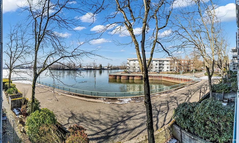 Waterfront! Enjoy unobstructed River views from this large West facing unit! Spacious layout with high ceilings, open kitchen, breakfast bar and large pantry. Living/dining room combo with gas fireplace, floor to ceiling window and a large covered balcony perfect for entertaining and relaxing! Updates include Elegant Cast Stone Fireplace Mantel, Floor to Ceiling built-in shelving, Extra large Hardwood Breakfast Bar, new bathroom, as well as new tiles throughout! Large bdrm has walk-in closet with organizers, storage & laundry. Great amenities including well equipped gym, party room and whirlpool/ Unit includes 1 parking & Locker. Wonderful neighbourhood right on the water less then 20 mins to downtown! Come see today - you won''t be disappointed!