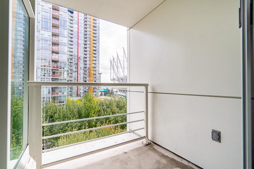 This one offers all the perks that you are looking for! Bright & spacious 1 bed + den + solarium comes with 1 parking + 1 storage locker + 1 bike locker, located at the quiet side of the building with greenery courtyard/city & peak of water views. Featuring smart efficient layout with no wasted space; floor to ceiling windows; good sized bedroom easily fits a king sized bed; versatile den and solarium can be used for office, additional storage, nursery or even a small bedroom. Great location, walk to Skytrain, Costco, Rogers Arena, restaurants, etc. everything that downtown Vancouver offers. Residents enjoy 24hr concierge, exclusive access to indoor swim pool, gym, bowling alley, sauna/steam room, rooftop terrace with bbq/hot tub and much more.